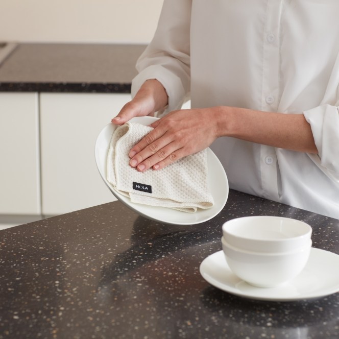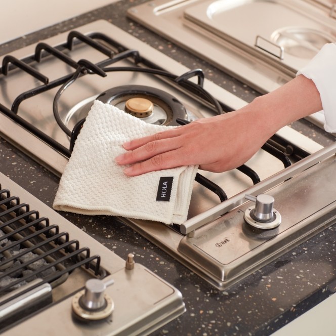 以多用途機能為理念,設計萬用抹布。雙面採用不同緹花織法,圓點面吸水、長條面刮油,手感厚實柔軟。三種簡約素色,白色、淺灰、深灰,可自然融入居家環境,並區分使用場域。