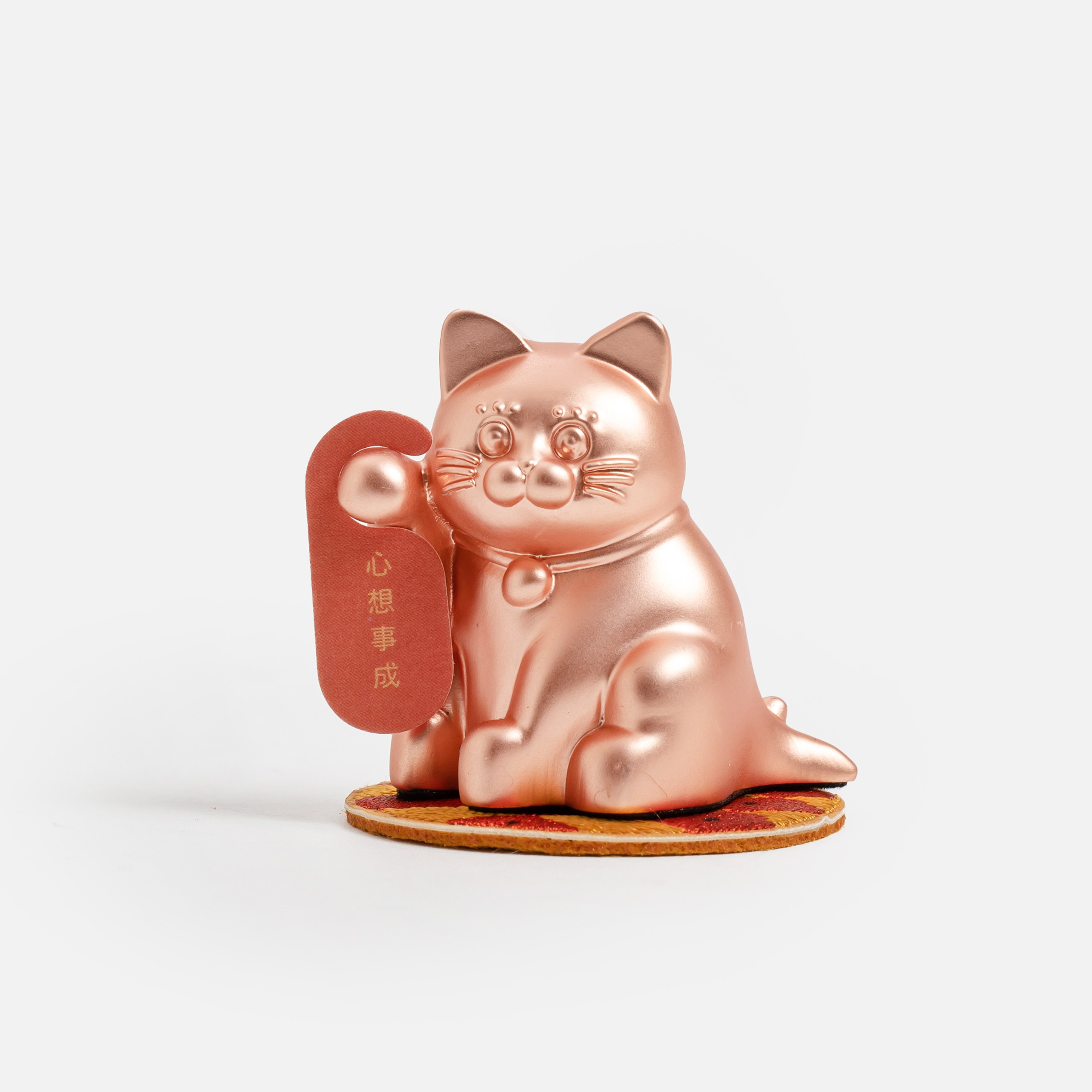 HOLA 獨家設計款,飽滿圓潤的招財貓,在龍年悄悄長出龍尾巴,化身成超萌金屬龍貓。集結本島舍五種印花圖素:唯心、愜意、超己、做夢、自癒,一次匯聚愛情、財運、事業、貴人運、健康等五種吉祥寓意,以繡花工藝打造精緻印花繡墊片,讓招財龍貓可以安穩擺放,用可愛鎮住厄運,為新的一年招來滿滿福氣。