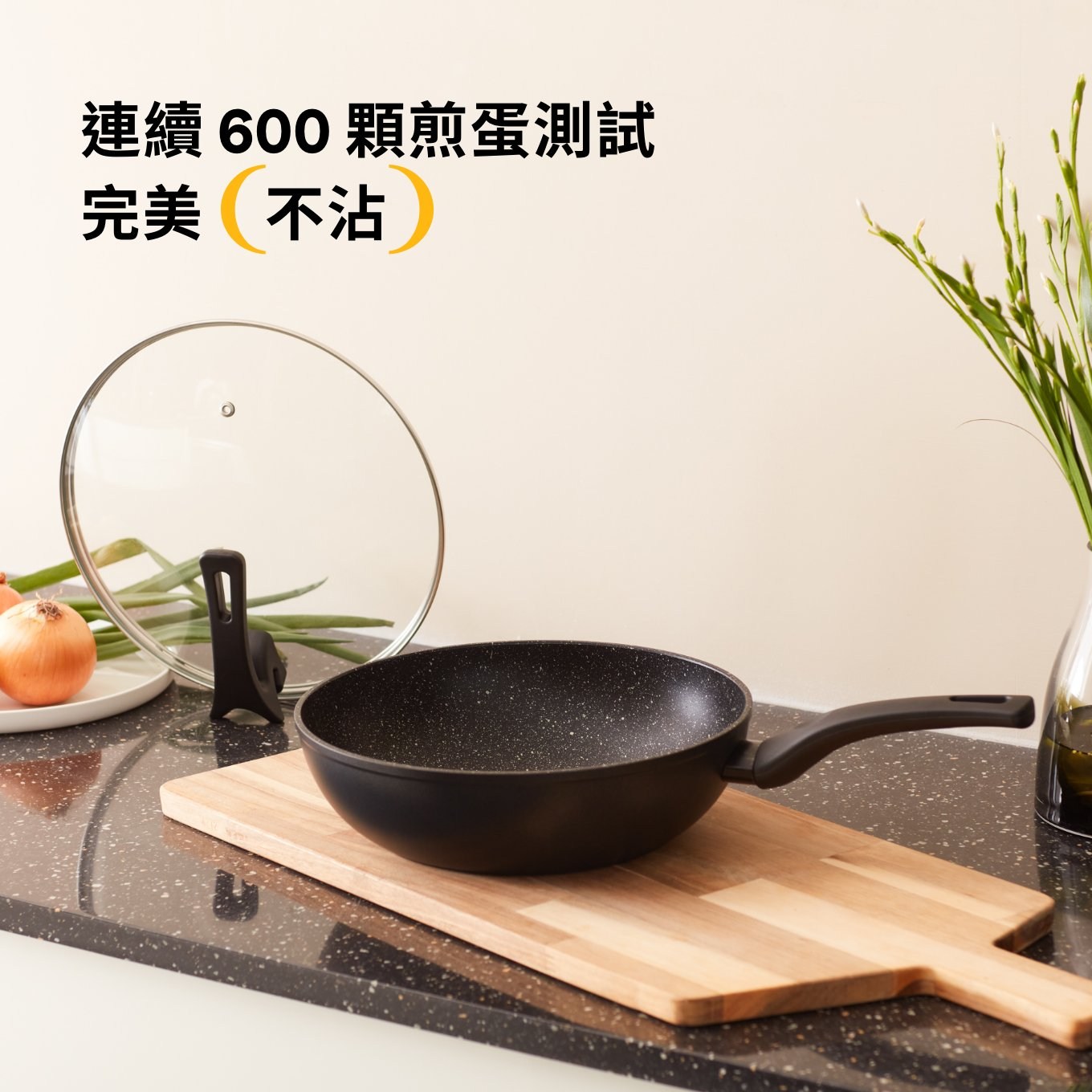 鍋體使用美國 Whitford Eterna 塗層,通過連續 600 顆煎蛋測試,具極佳不沾性。通過 SGS 測試,不含 PFOA、 PFOS 危害人體物質,輕鬆低油、健康烹飪。