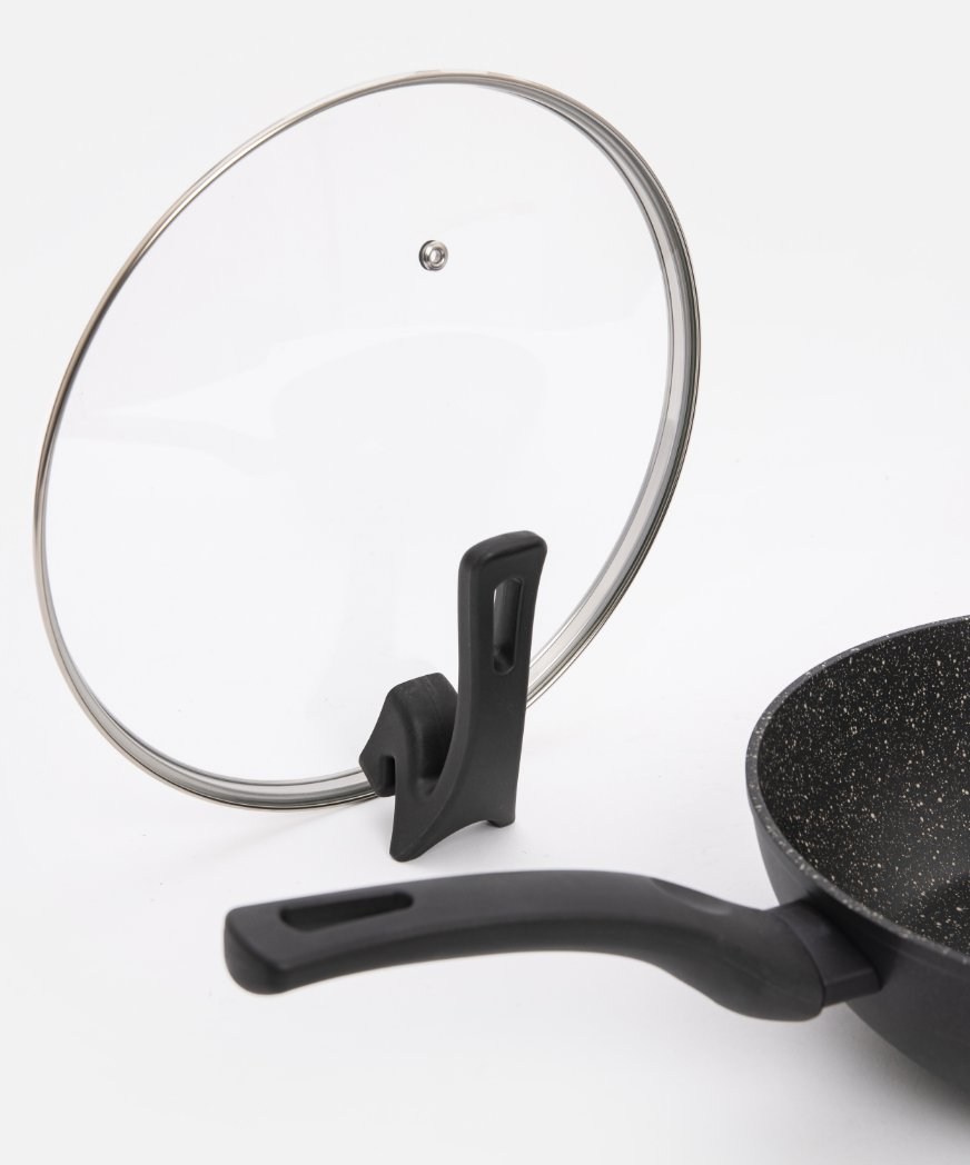 可立式手柄,開蓋一放,輕巧不佔檯面空間。鍋蓋採用耐高低溫差的強化玻璃,全透明可直接確認料理狀態,輕鬆烹飪。