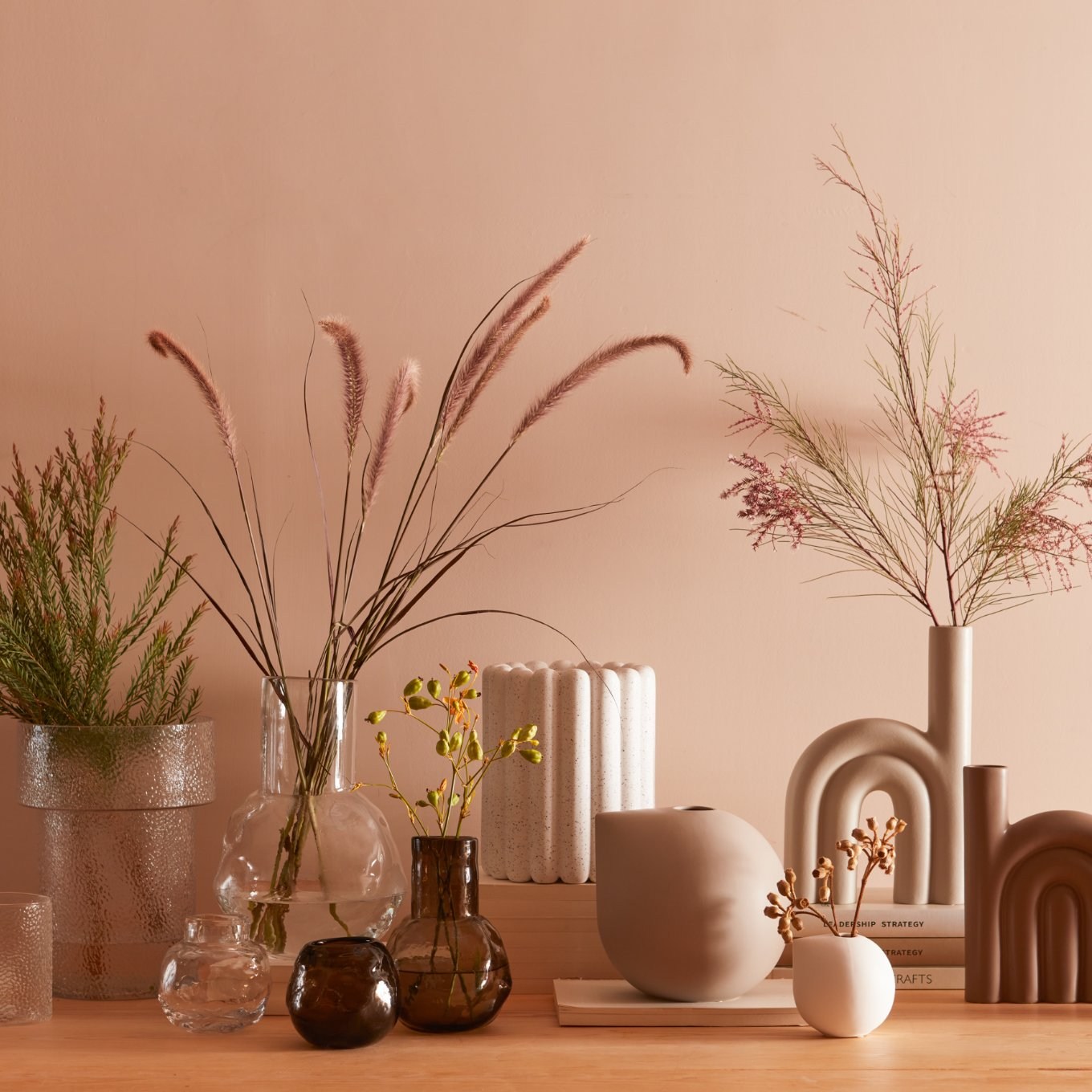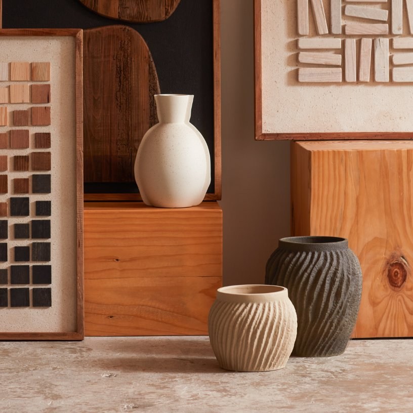 以低飽和度的柔和色調,搭配不同工藝打造出豐富多變的器型,有的俐落圓潤、有的具粗糙手刻感。在實用性之上,質感外型單獨擺放亦能提升空間美感。