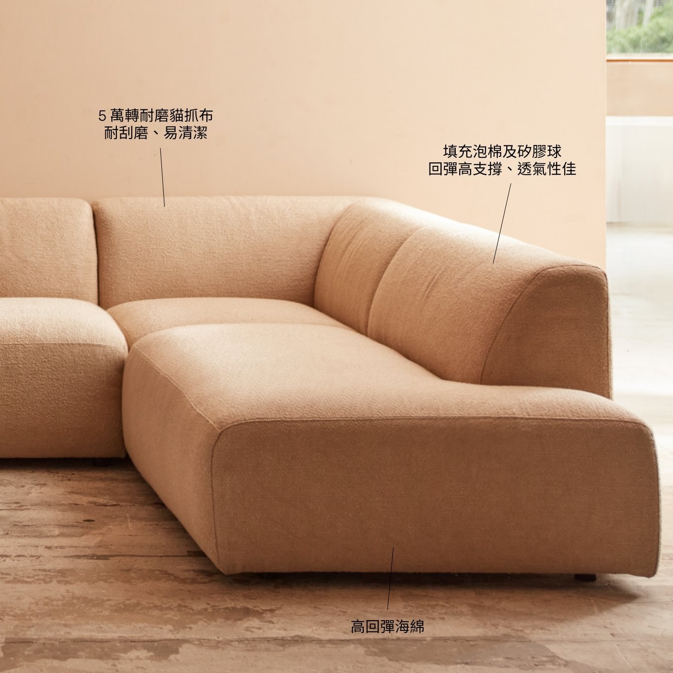 選用耐磨貓抓布,經耐磨係數 5 萬轉、抗起毬 4 級測試,有效防刮磨,且能避免水分、髒汙直接滲入纖維,即使不慎沾染髒污,也可使用織品清潔機清洗,輕鬆維持整潔。( ※ 布套不可拆洗。)