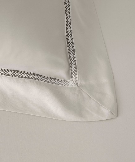 100% 天絲™萊賽爾纖維製成,結合專櫃級高密度 300 織紗/ 60 支的精細紡紗編織,親膚、透氣的緞面觸感,讓每一吋肌膚都能擁有最舒適的睡眠體驗。被套及枕套邊緣為飛邊設計,並採用鏤空蕾絲刺繡工藝,優雅細緻,為臥室奠定簡約的輕奢質感。