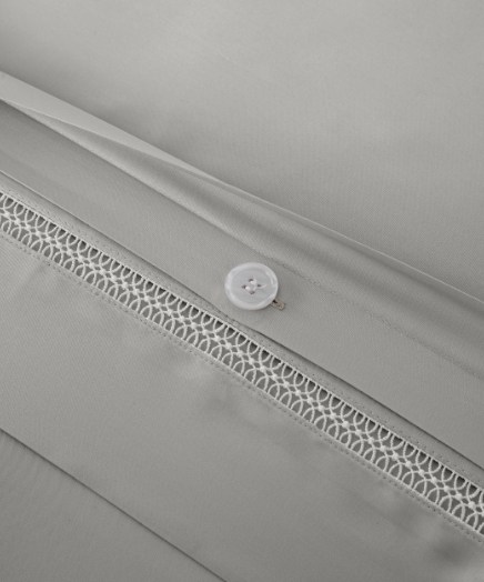 飛邊結合別緻的鏤空蕾絲刺繡工藝,為臥室增添優雅細節。被套為單邊開釦,內含八個啪扣設計,只需對齊啪扣,即可輕鬆固定、拆卸被套。