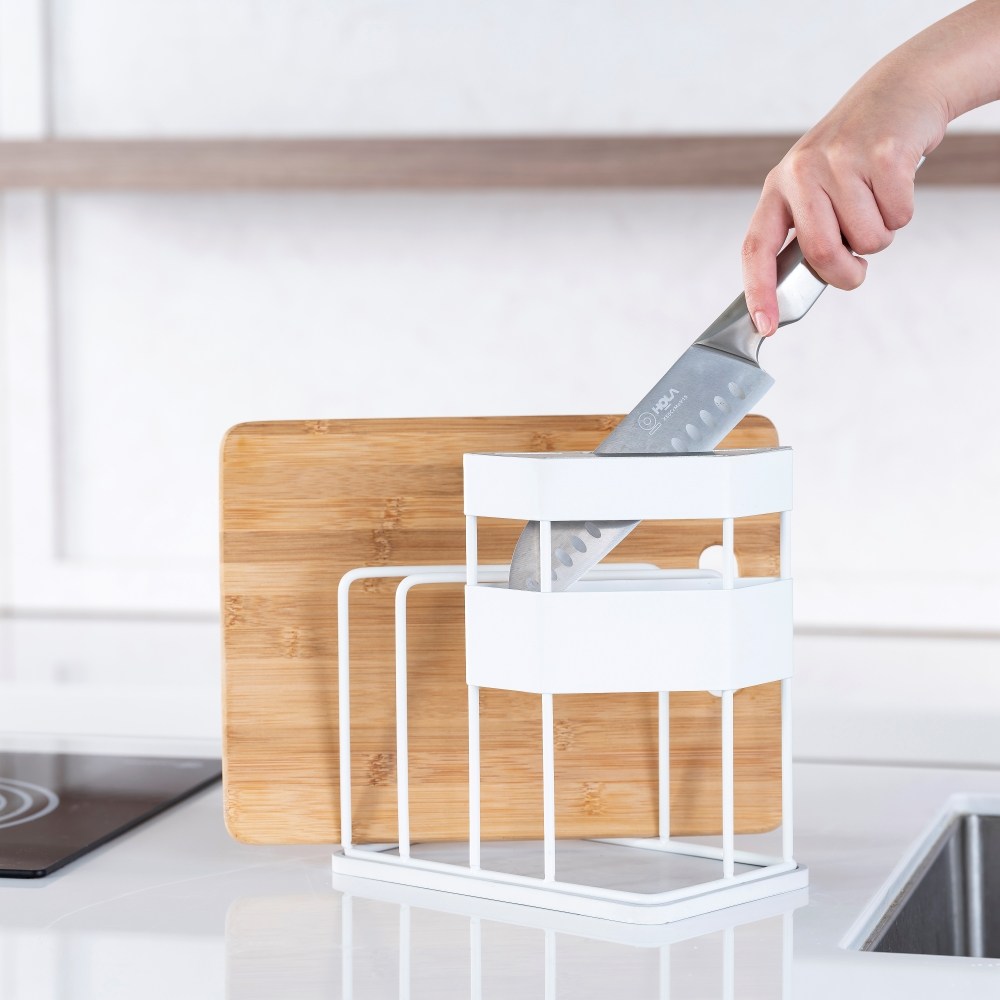 INK鐵製烤漆砧板刀具架 附吸水珪藻土墊 白