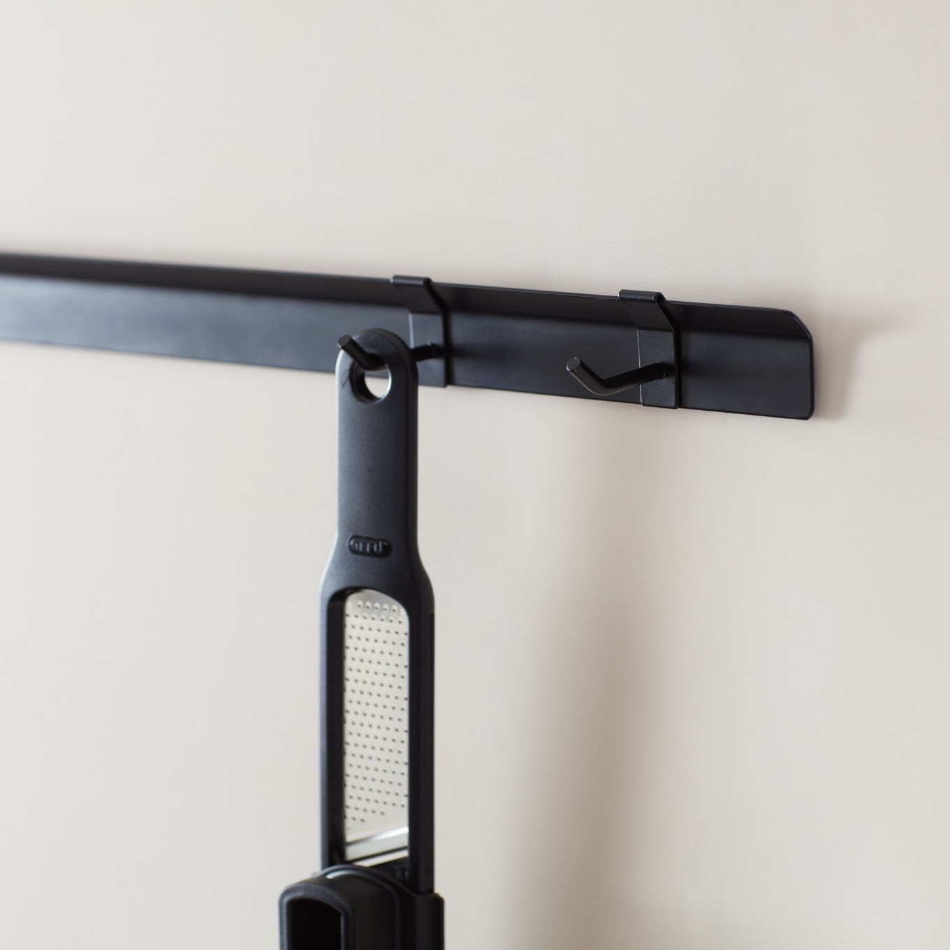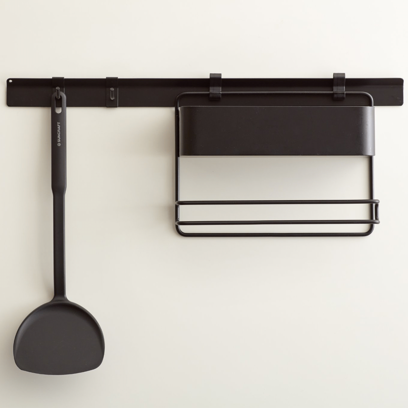 俐落沉穩的墨黑,完美貼合在牆面上,將壁掛掛勾與壁掛掛桿扣合,更可結合 INK 壁掛系列之專屬掛件,以模組化的方式,自由組裝、搭配喜愛的壁掛組合,透過簡約線條勾勒美型有序,形塑出屬於家的風格調性。掛勾位置可依需求左右移動,可輕鬆掛置鍋鏟、削皮刀等廚房小物。壁掛掛桿跟掛件另售。