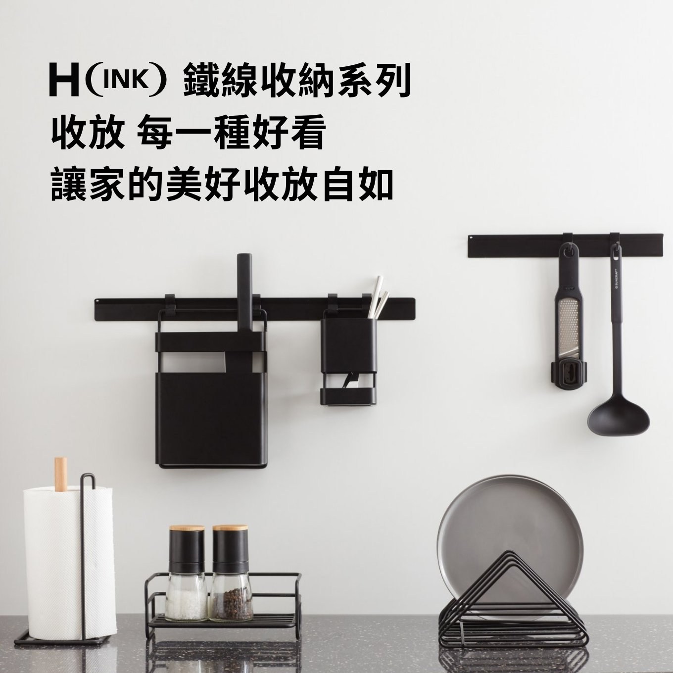 以純粹的黑與白,延展出統一線徑規格的鐵線單品,結合【美型收納】與【靈活設計】兩大特點,打造極簡俐落的居家質感收納,一型多用的多層次功能、隨心搭配的模組化設計,All INK!為你收放家的每一種好看。