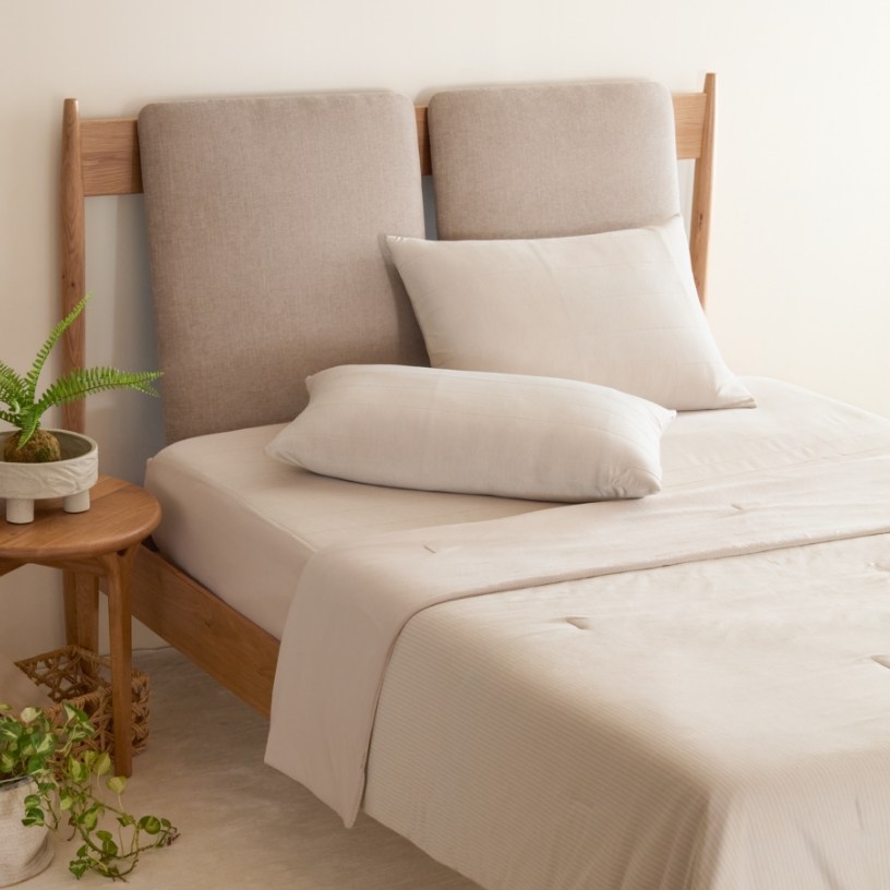 保潔墊與床包二合一 ,零死角的涼感, 完美貼合包覆整張床,不易移位。底部網眼布設計,加速散熱,更加清爽透氣。揮別黏膩悶熱的夏夜,以最高等級涼感認證,創造沁涼舒適的有感降溫體驗,一夜好眠。
