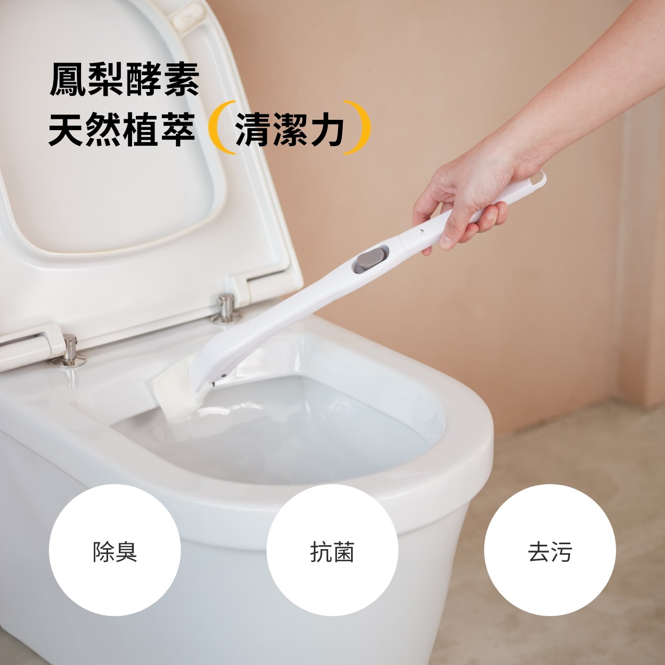 於刷布中使用天然萃取鳳梨酵素,不需額外添加清潔劑,其豐富的蛋白酶能自然分解環境髒污與臭味,經全國公正檢驗能有效抵抗大腸桿菌、金黃色葡萄球菌,帶來全方位的溫和清潔力。