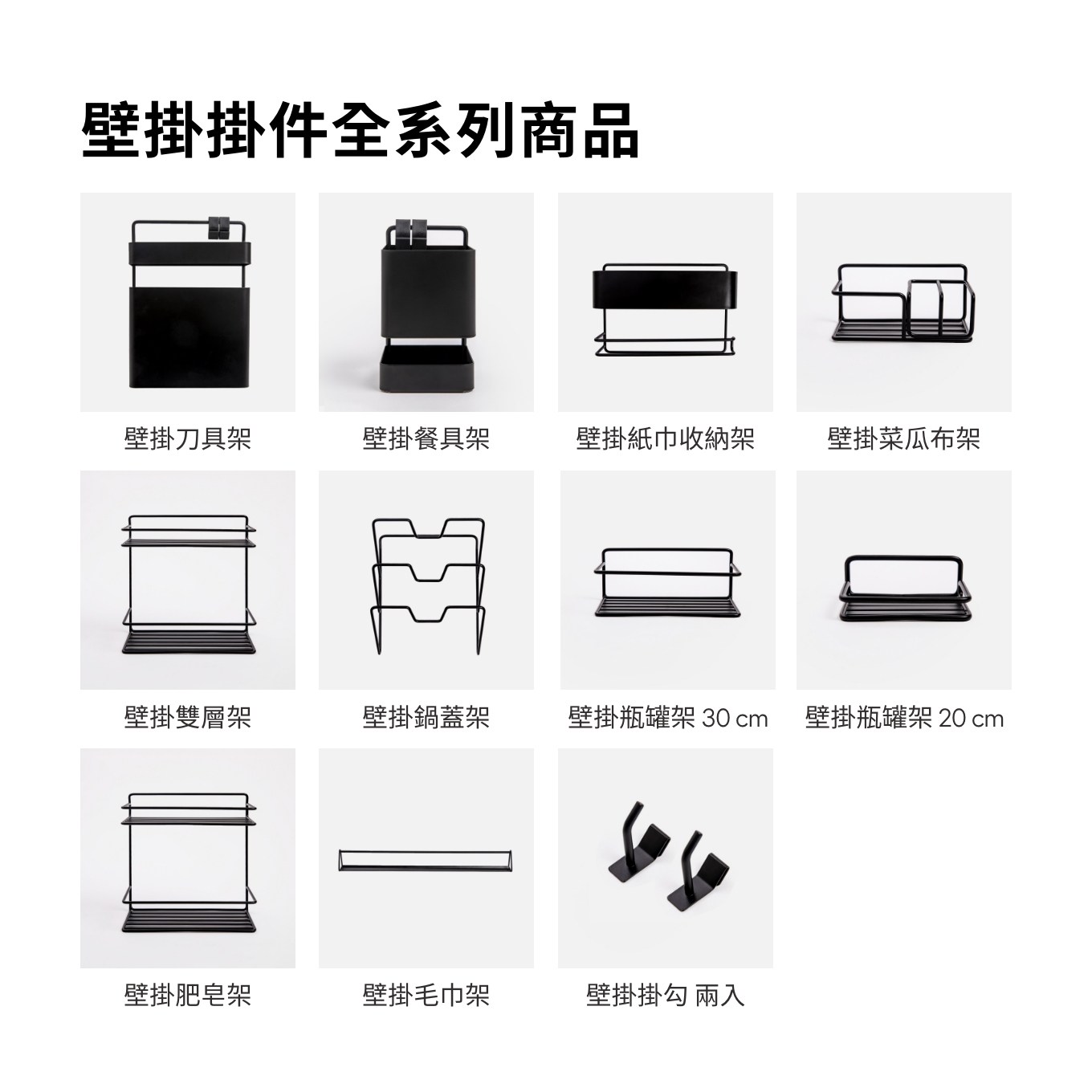 俐落沉穩的墨黑,完美貼合在牆面上,壁掛掛桿搭配 INK 壁掛系列之專屬掛件(如:壁掛刀具架、壁掛瓶罐架、壁掛鍋蓋架等),以模組化的方式,自由組裝、搭配喜愛的壁掛組合,透過簡約線條勾勒美型有序,形塑出屬於家的風格調性。壁掛掛勾和掛件另售。