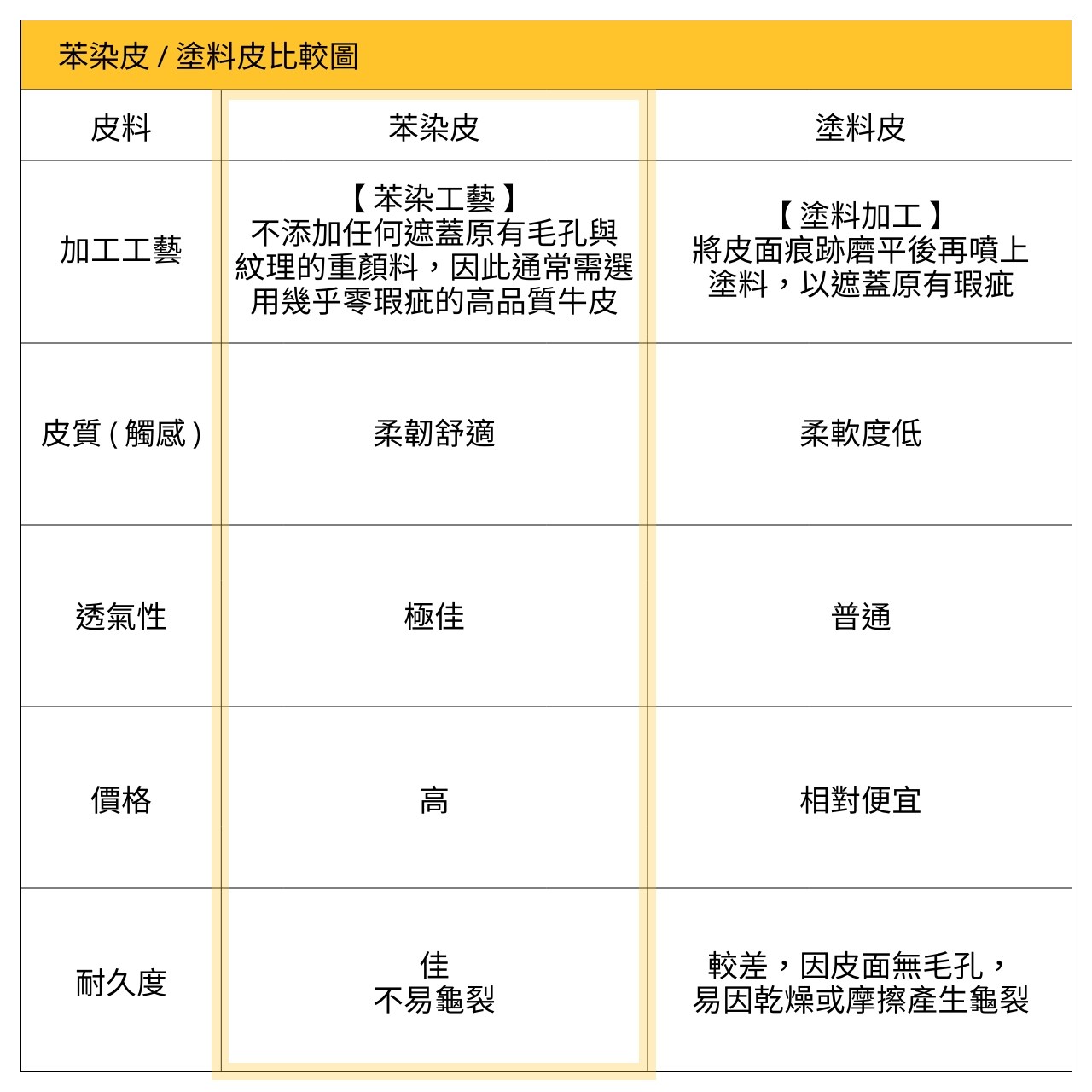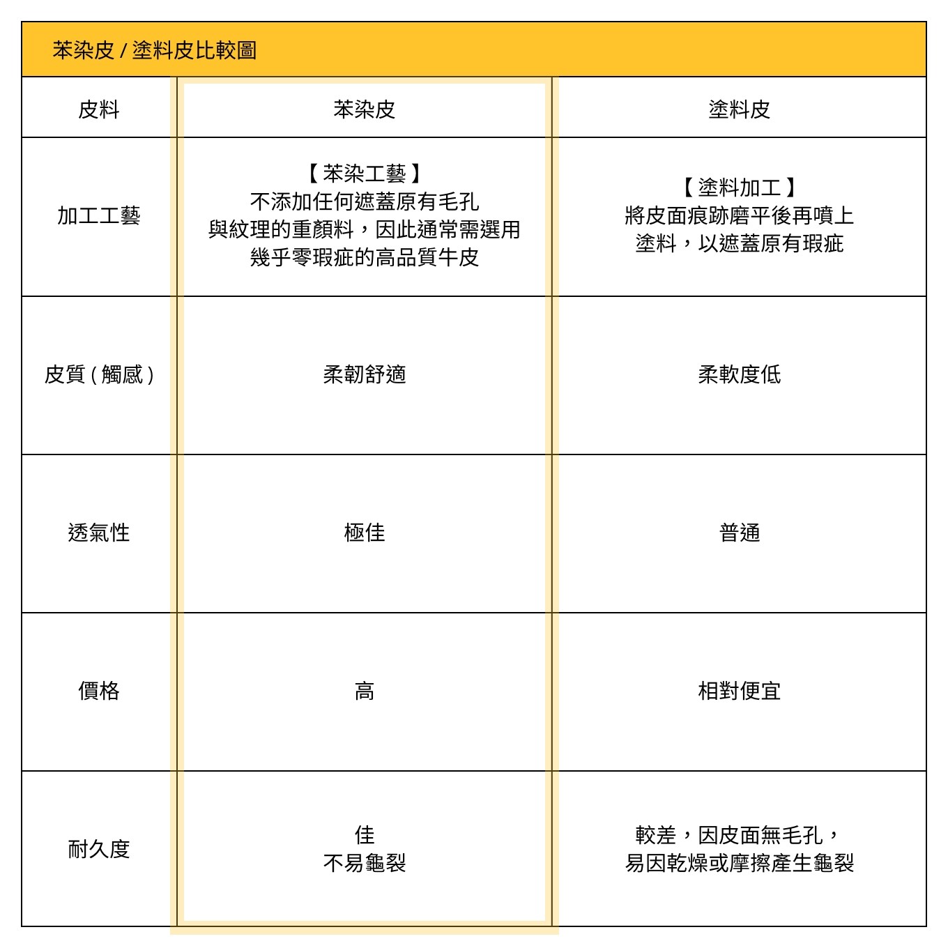 苯染是一種特殊皮革染色工法,不添加任何會遮蓋其原有毛孔與紋理的人工塗料,能保留皮革的天然美感與色澤,故會嚴格篩選被細心呵護、表皮幾乎沒有損傷的牛隻。苯染皮通常會取牛皮的最外層、兼具表皮層堅韌和真皮層柔軟的頭層牛皮,而這類皮革只佔全部生皮的 5% 左右,非常稀有。因為有極佳透氣性與柔軟度,被稱為「會呼吸的皮革」;相較塗料皮更耐用、不易龜裂,隨著使用時間越久,色澤也越顯溫潤迷人,擁有無與倫比的自然樣貌。