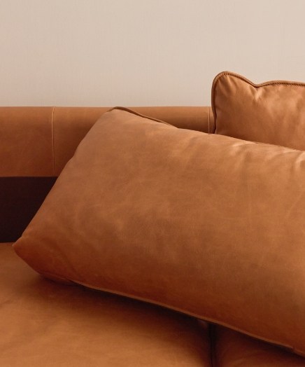 頭層牛皮( Top Grain Leather ) 為牛皮的最外層,保留了牛皮最完整、最真實的樣貌,可清楚看到皮革的天然紋理、毛孔與色澤。HOLA 精心挑選義大利進口的頂級原生牛皮,符合 LWG ( Leather Working Group,皮革工作組織 )的低耗能認證,質地細膩柔軟、親膚透氣,同時堅韌耐用,是製作苯染皮的上上之選。而每頭牛都是獨一無二的,故每批皮沙發的色澤與紋理也都有些微不同,展現其獨特珍貴的風韻。
