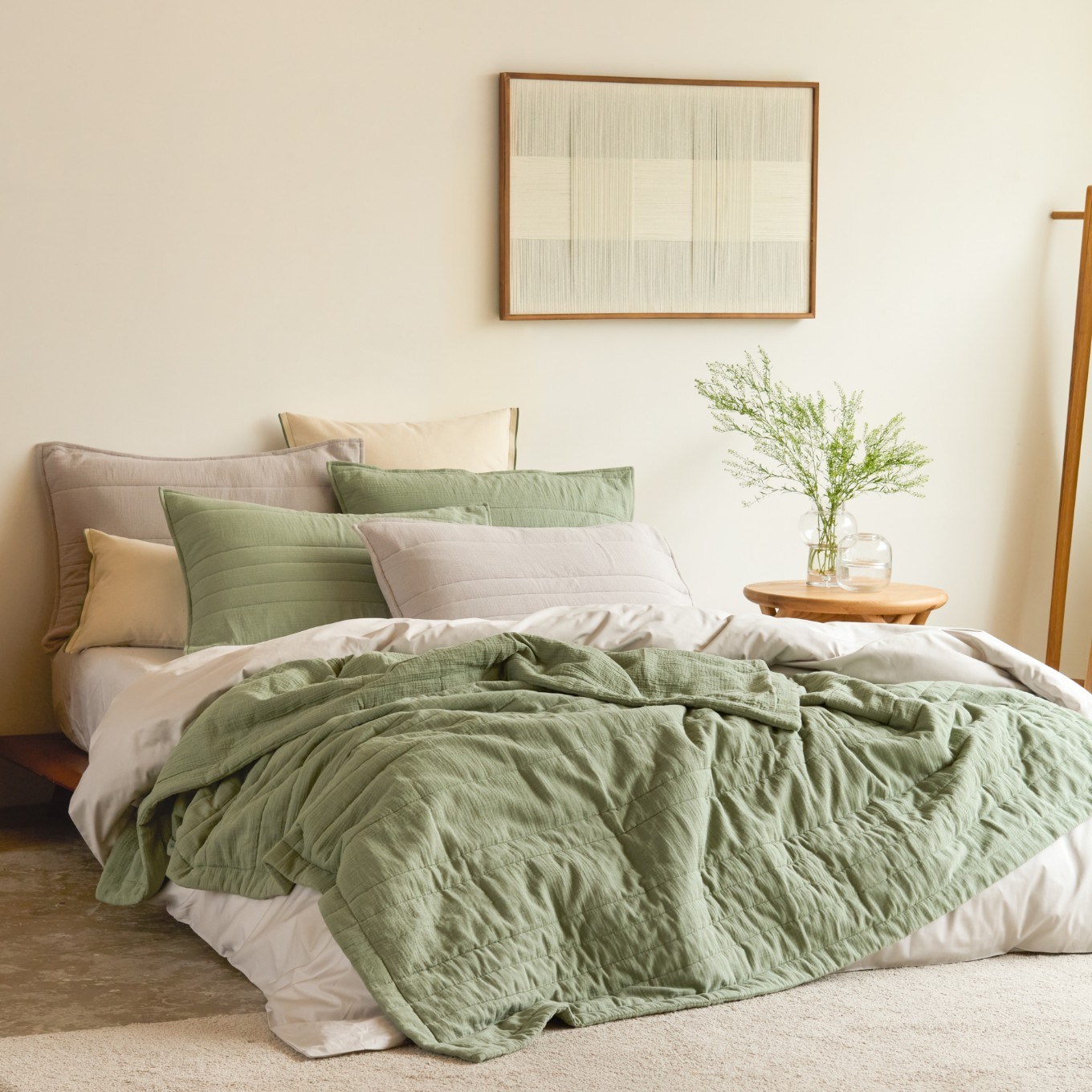採用輕盈透氣的雙層紗布料,實現兼具蓬鬆與柔軟的觸感,給予肌膚舒適感受。並採用多針絎縫工藝,呈現出自然的蓬鬆與皺褶,營造悠閒自在的生活氛圍。在潮濕悶熱的夏夜裡,感受天然純棉的透氣覆蓋與200織紗線織造的親膚觸感,給予肌膚乾爽、舒適的涼感體驗。搭配簡約百搭的PALETTE素色色彩,能與其他寢具自由混搭不同色系,妝點屬於自己的居家臥室色彩。