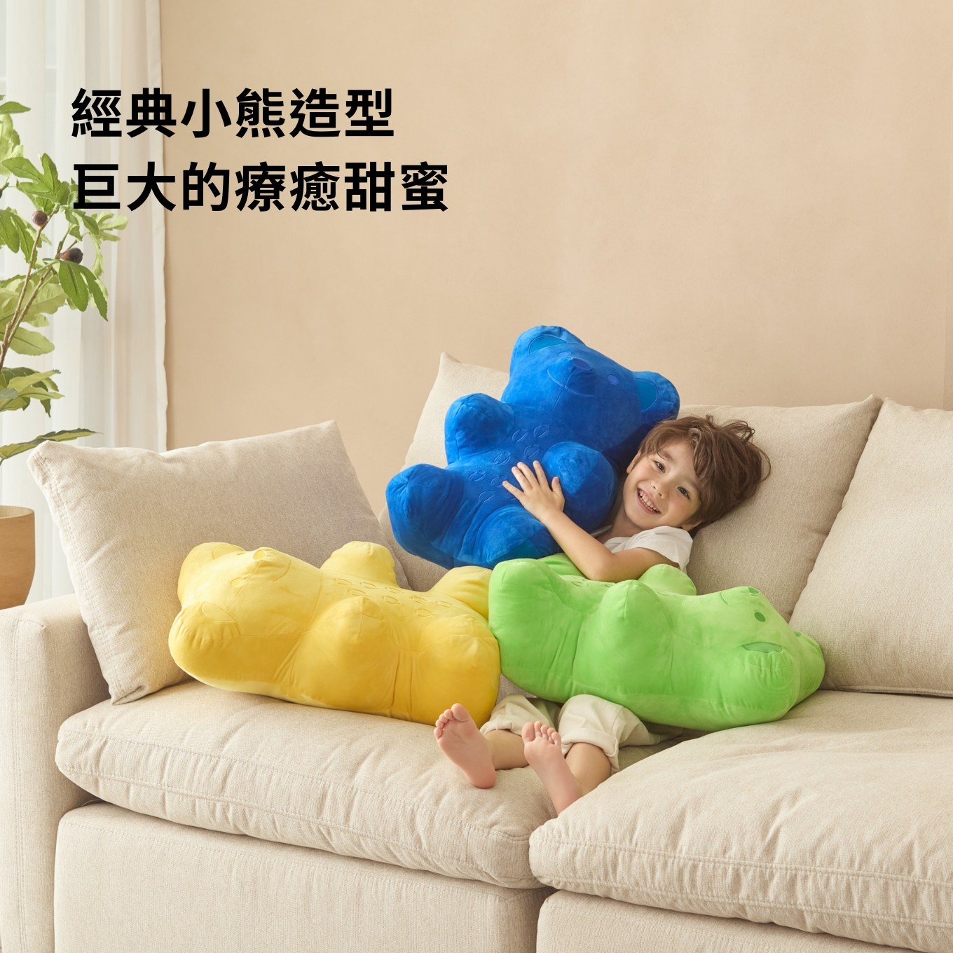 高度接近50公分、厚度更是有20公分的大抱枕,圓潤飽滿的立體身形,以及紮實的擁抱感,無論大人或小孩,皆能感受到滿滿療癒。
