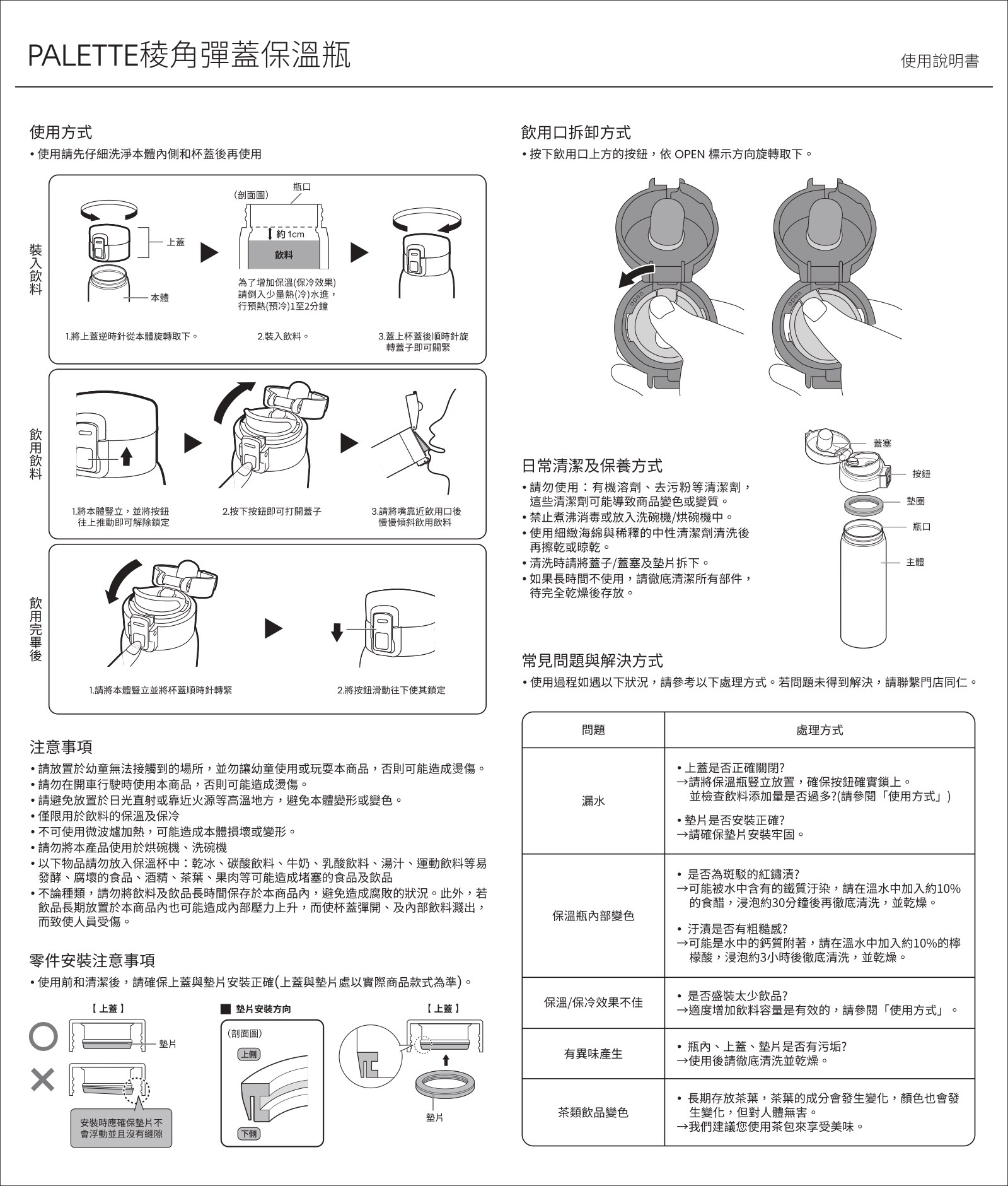 PALETTE彈蓋稜角不鏽鋼保溫瓶340mL 瓷石白