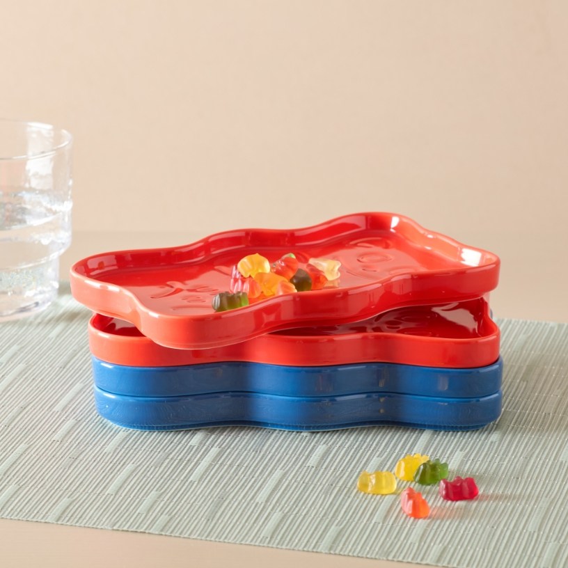 活潑可愛的紅藍兩色,勾勒出可愛小熊細微輪廓中的活潑熱情,讓點心更加可口;採用堅硬強化瓷製成,耐用不易有刮痕,也方便堆疊,提供繽紛歡樂的餐桌饗宴。