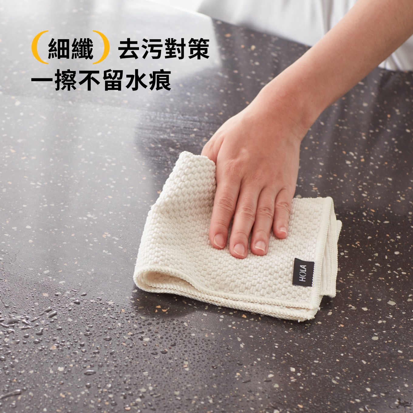 超細纖維以毛細原理清潔日常細微污垢,具超強吸水力,隨手一擦不留水痕,有效吸附液體中的污垢與油漬,而乾擦時會以靜電吸沾附灰塵。輕鬆保持空間整潔,帶來剛剛好的舒適純淨。