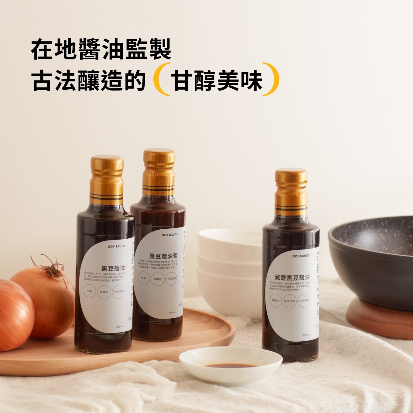 與傳承 80 年的在地醬油廠合作,嚴選優質黑豆,經古法純釀。醬香濃郁、口感甘醇,滷、煮、炒、沾、拌、烤、醃皆宜。經第三方公正單位檢驗合格,無小麥麩質過敏原、無添加防腐劑、色素及味精,美味又安心。