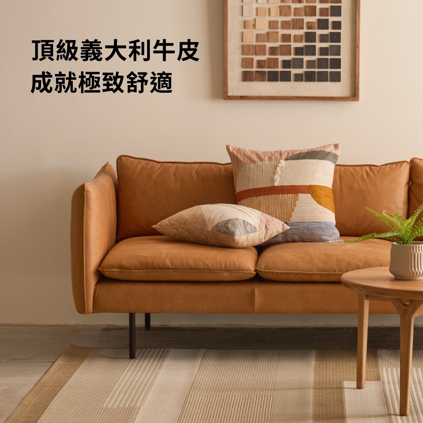 嚴選義大利原裝進口頭層牛皮,備受呵護、幾乎零瑕疵的頂級真皮經全苯染工藝處理後,保留皮革的天然質感,擁有絕佳透氣性與柔軟度。坐墊及靠墊填充 100% 天然羽絨,坐感蓬鬆 Q 彈、不易扁塌,不僅是活動式,能自由調整位置及角度,更可拆卸進行清理維護。底部框架採用厚實實木結合多層次高回彈泡綿,讓整體更具支撐力。伊登苯染牛皮沙發以頂級材質成就極致舒適,更完美演繹極上奢華的生活品味。