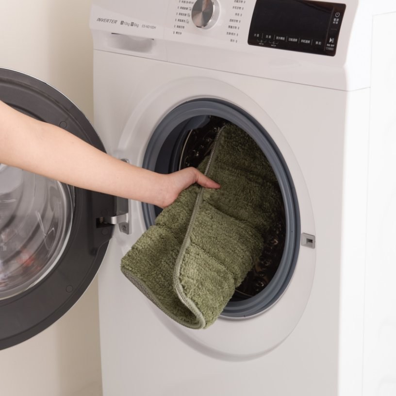 將踏墊放入洗衣袋內,即可使用洗衣機洗滌,清潔便利。須晾曬陰乾,請勿烘乾。
