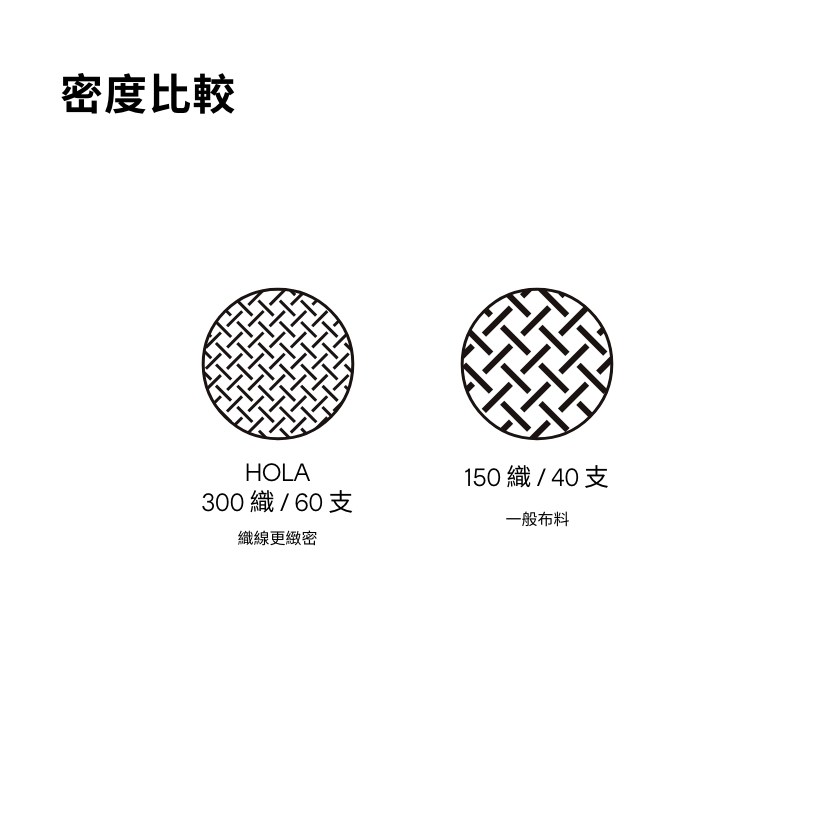 織品面料的紗支數越高,觸感會更加細緻柔順,織密度越高,越強韌耐用。HOLA 嚴選 300 織紗/60 支等級,兼具完美觸感與高耐用度,每個夜晚都能感受天絲的極致舒適。