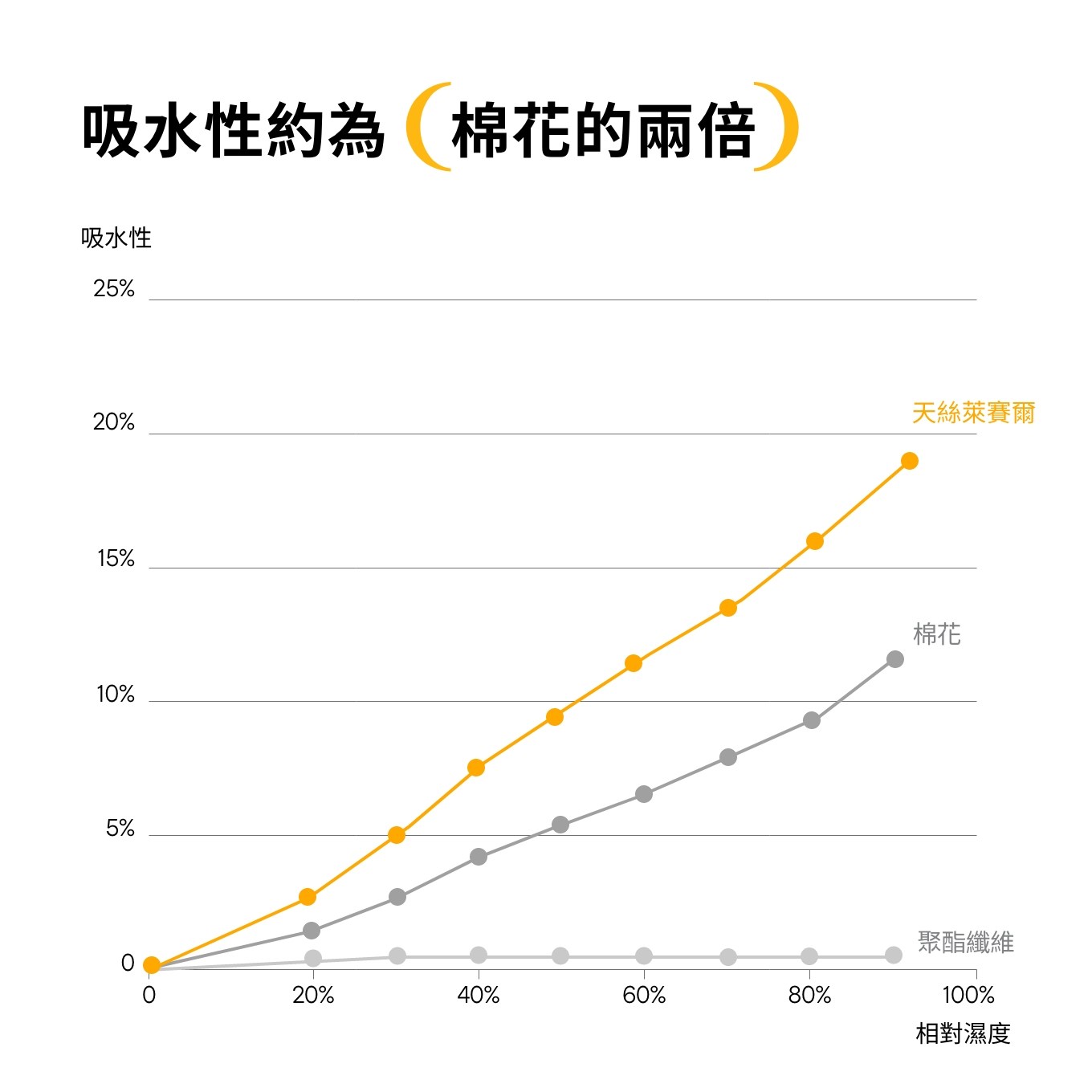 萊賽爾纖維擁有極佳的吸濕性及透氣性,能更好的調節溫度和濕度,相較其他面料更適合台灣潮濕悶熱的天氣,在炎熱的夏天給予肌膚乾爽、舒適的涼感體驗。