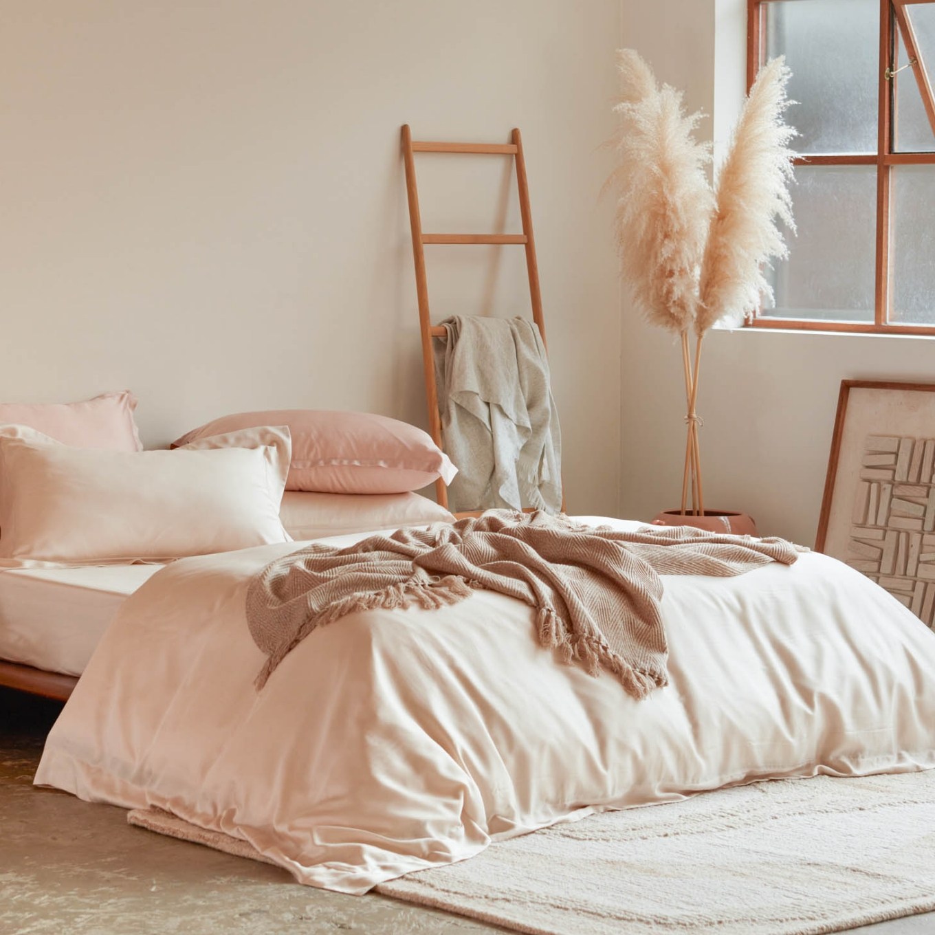 100% 天絲™萊賽爾纖維製成,結合專櫃級高密度 300 織紗/ 60 支的精細紡紗編織,親膚、透氣的緞面觸感,讓每一吋肌膚都能擁有最舒適的睡眠體驗,搭配取材自台灣在地風景色彩的 PALETTE 色系,為臥室奠定柔和、細緻的純粹基調。