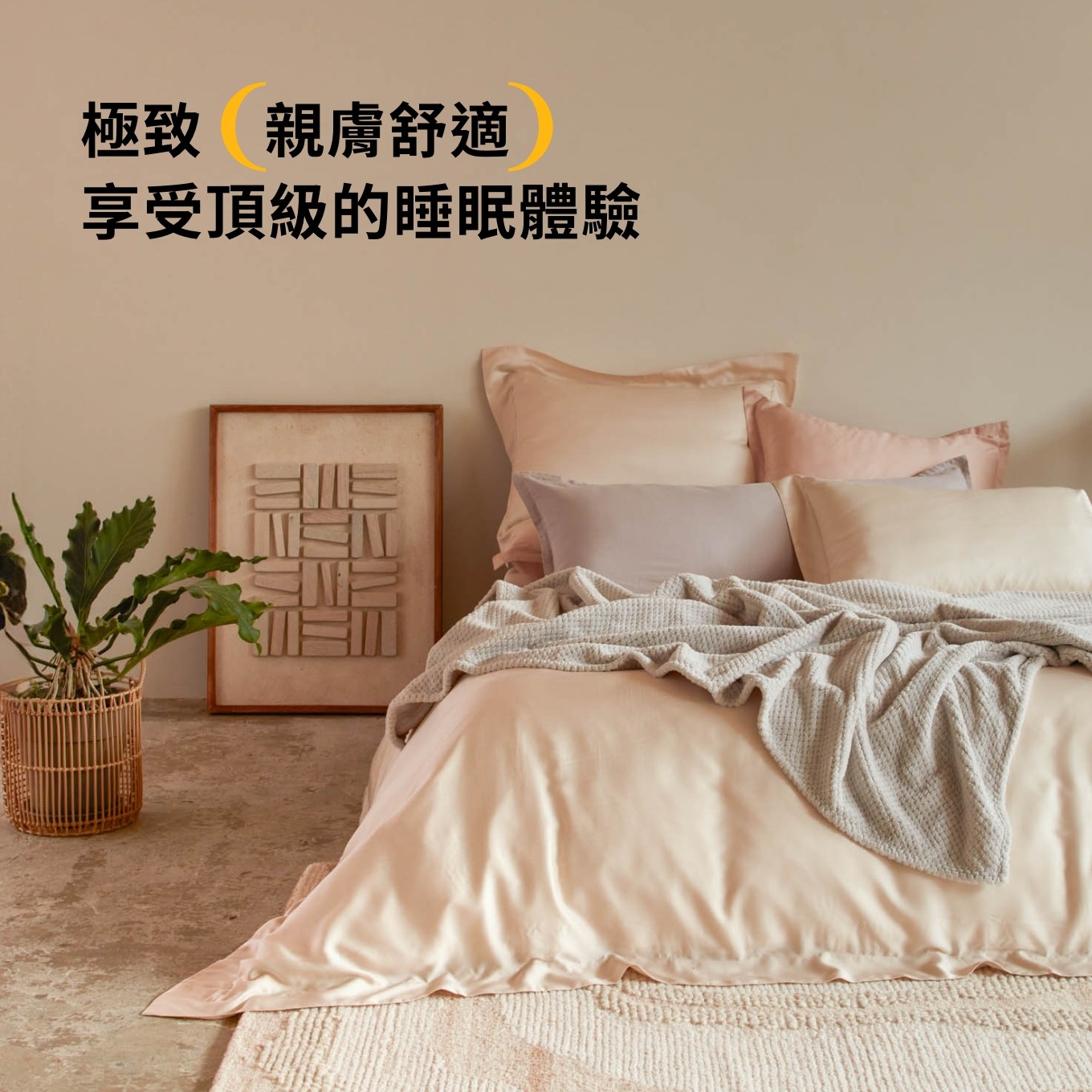 100% 天絲™萊賽爾纖維製成,結合專櫃級高密度 300 織紗/ 60 支的精細紡紗編織,親膚、透氣的緞面觸感,讓每一吋肌膚都能擁有最舒適的睡眠體驗,搭配取材自台灣在地風景色彩的 PALETTE 色系,為臥室奠定柔和、細緻的純粹基調。
