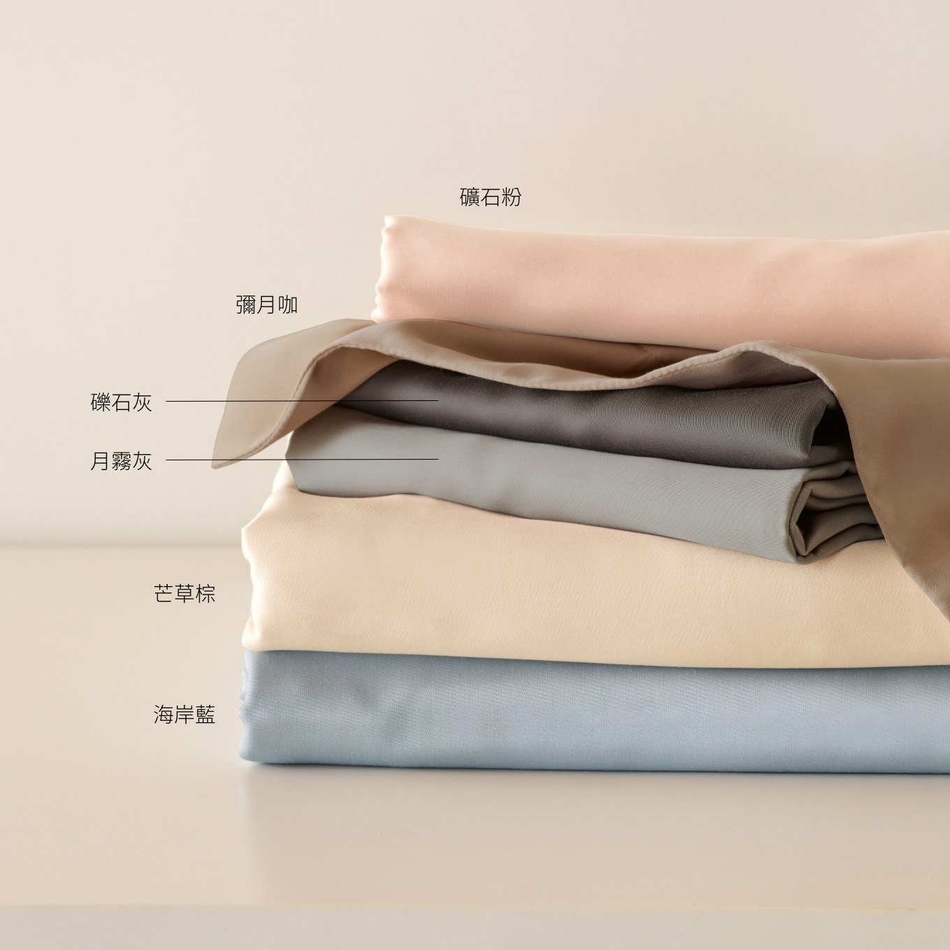 100% 天絲™萊賽爾纖維製成,結合專櫃級高密度 300 織紗/ 60 支的精細紡紗編織,親膚、透氣的緞面觸感,讓每一吋肌膚都能擁有最舒適的睡眠體驗,搭配取材自台灣在地風景色彩的 PALETTE 色系,為臥室奠定柔和、細緻的純粹基調。