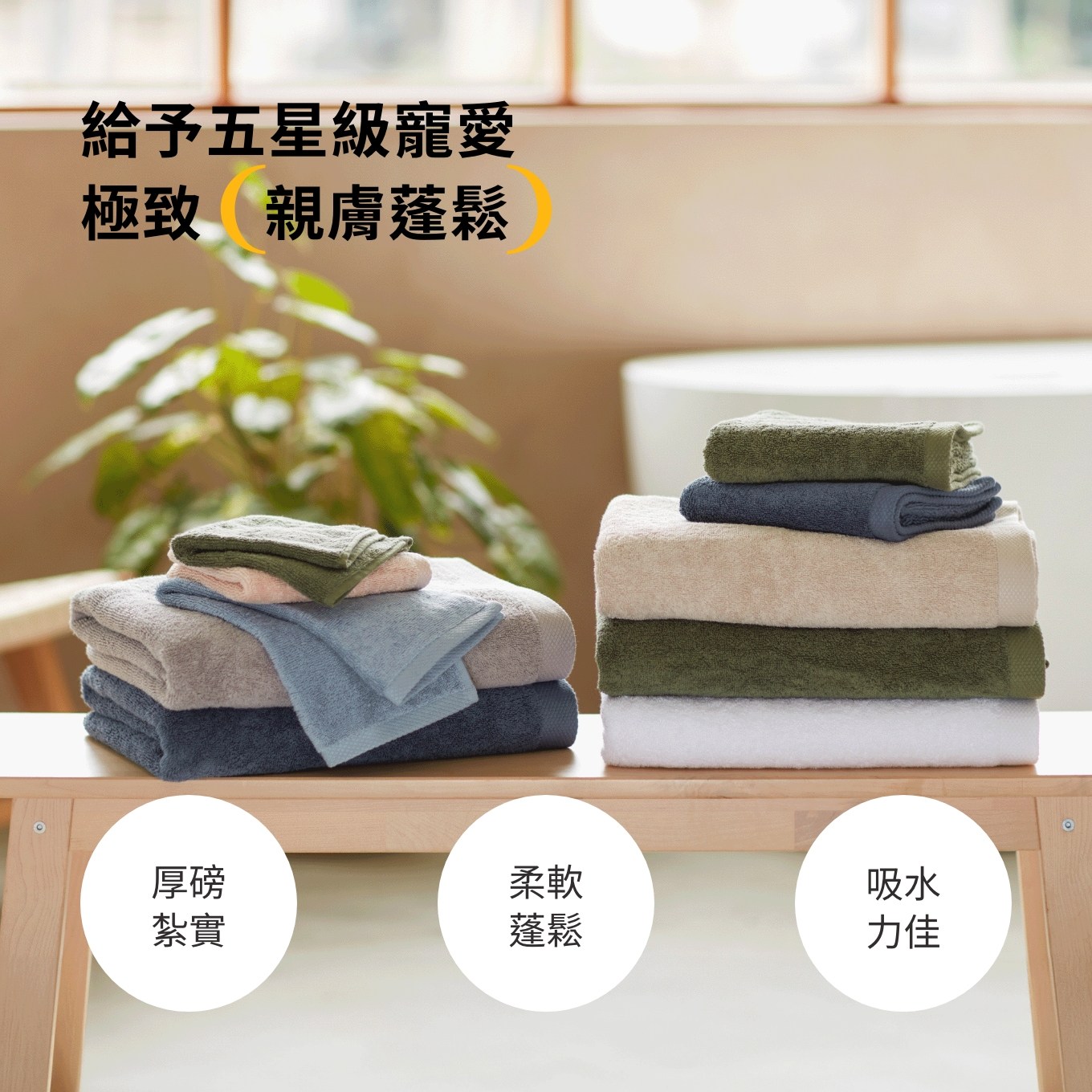 尺寸寬大,柔軟親膚,溫柔包裹全身、給肌膚細緻呵護。
