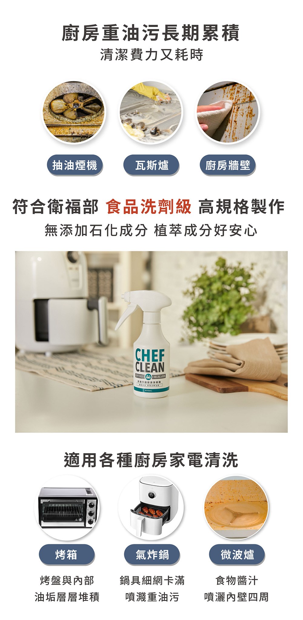 【CHEF CLEAN 淨毒五郎】去油污廚房清潔慕斯300ml|台隆手創館