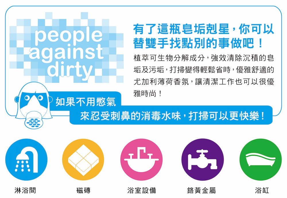 清潔打掃浴室,一定不是你每個禮拜想做的第一項有趣的事,這當然也不是我們希望的!所以我們研發了這瓶浴廁清潔劑,全新的草本配方的綠色潔淨科技,可以清潔浴廁的頑強污垢,消除皂垢跟討厭殘留。