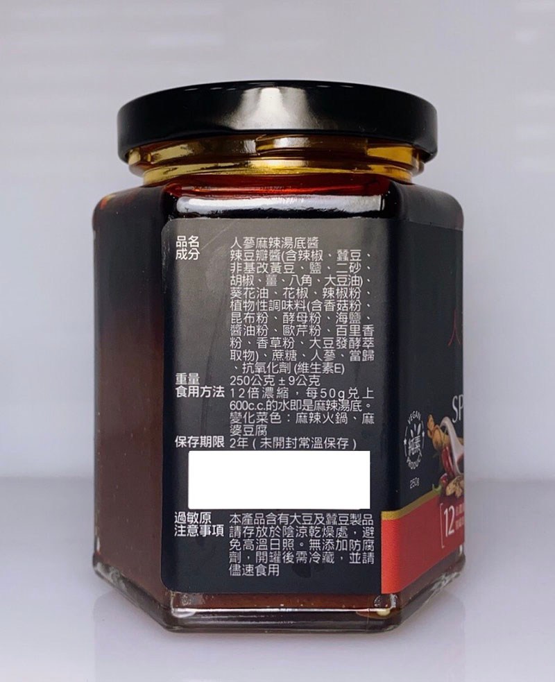 毓秀私房醬 人蔘麻辣湯底醬250公克/罐(超商限2罐)