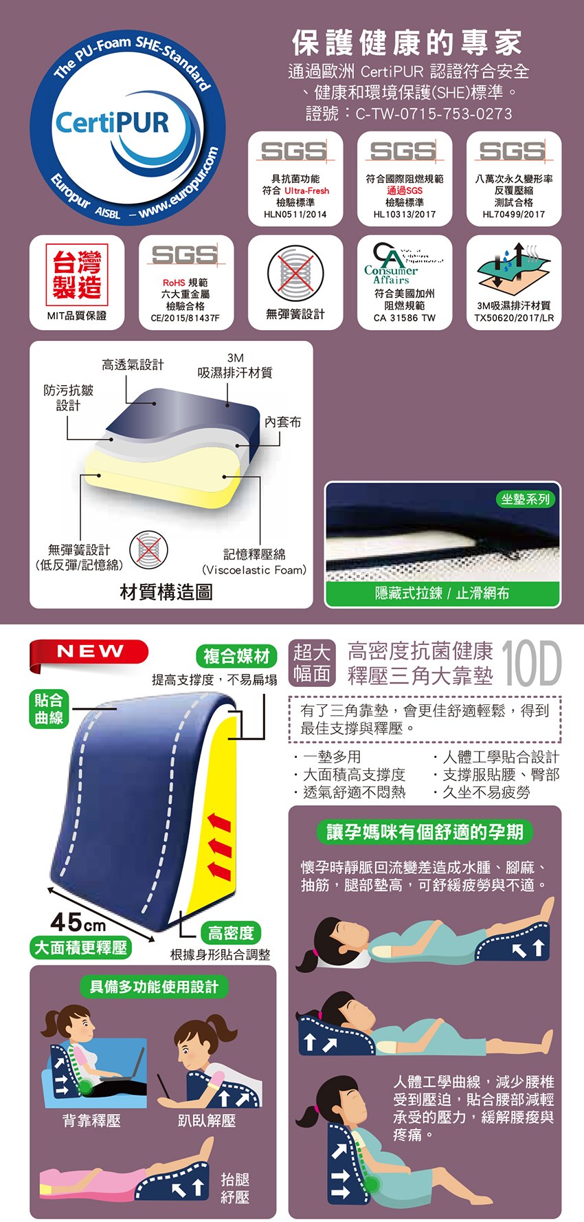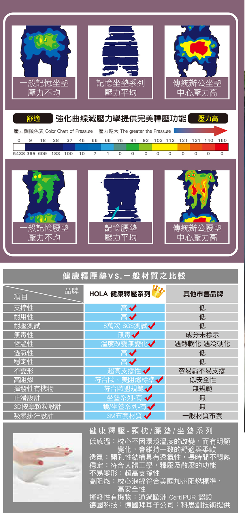 - 穩定:符合人體工學,釋壓及散壓的功能
