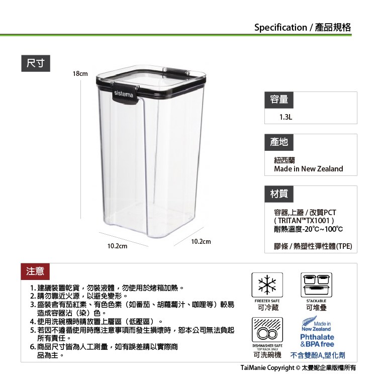 紐西蘭SISTEMA 方型密封罐1.3L-51403