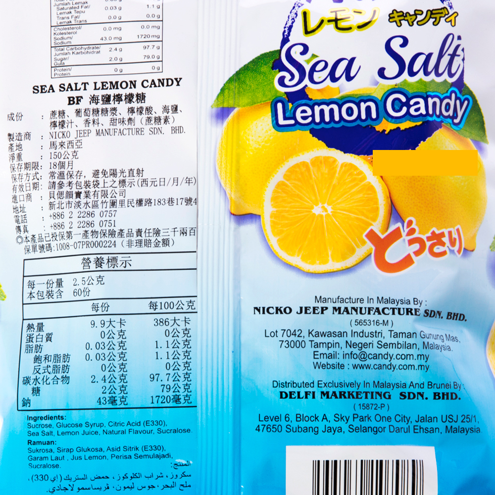 BF 海鹽檸檬糖 150g Big Foot 馬來西亞