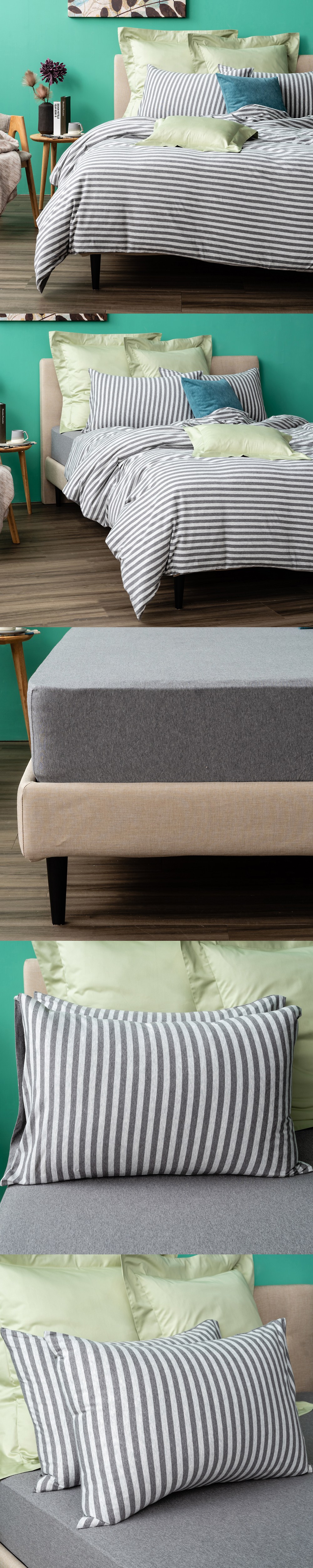 更可選購同系列素色單品或條紋床被組,輕鬆換搭運用~