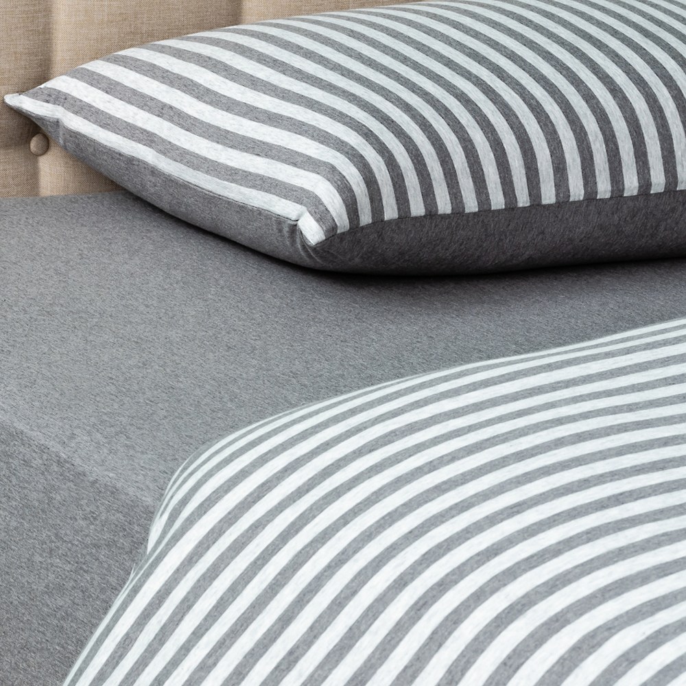 自然針織條紋被套加大經典深灰