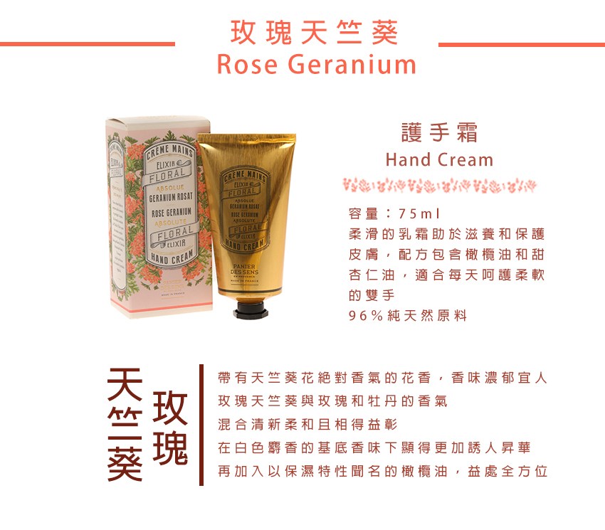 法國自然莊園-玫瑰天竺葵 護手霜75ml