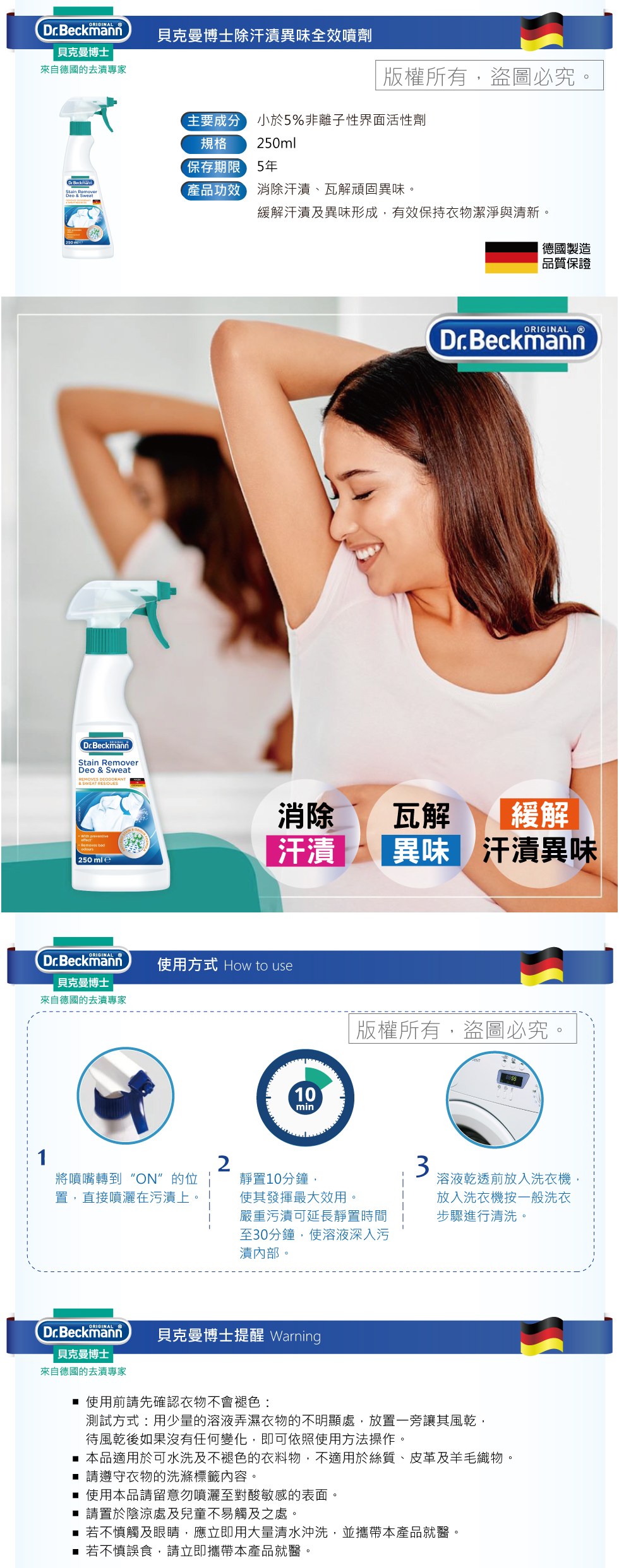 貝克曼博士除汗漬異味全效噴劑 250ml