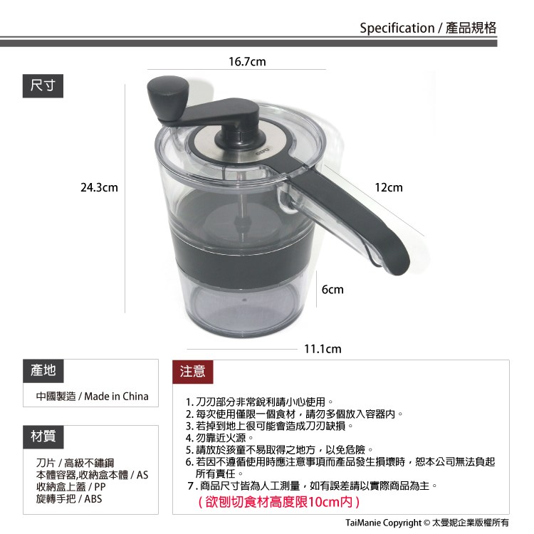 下村KG 趣味食房切碎旋轉蔬果調理器 大(16.5cm) 白色 + 透灰色 1盒