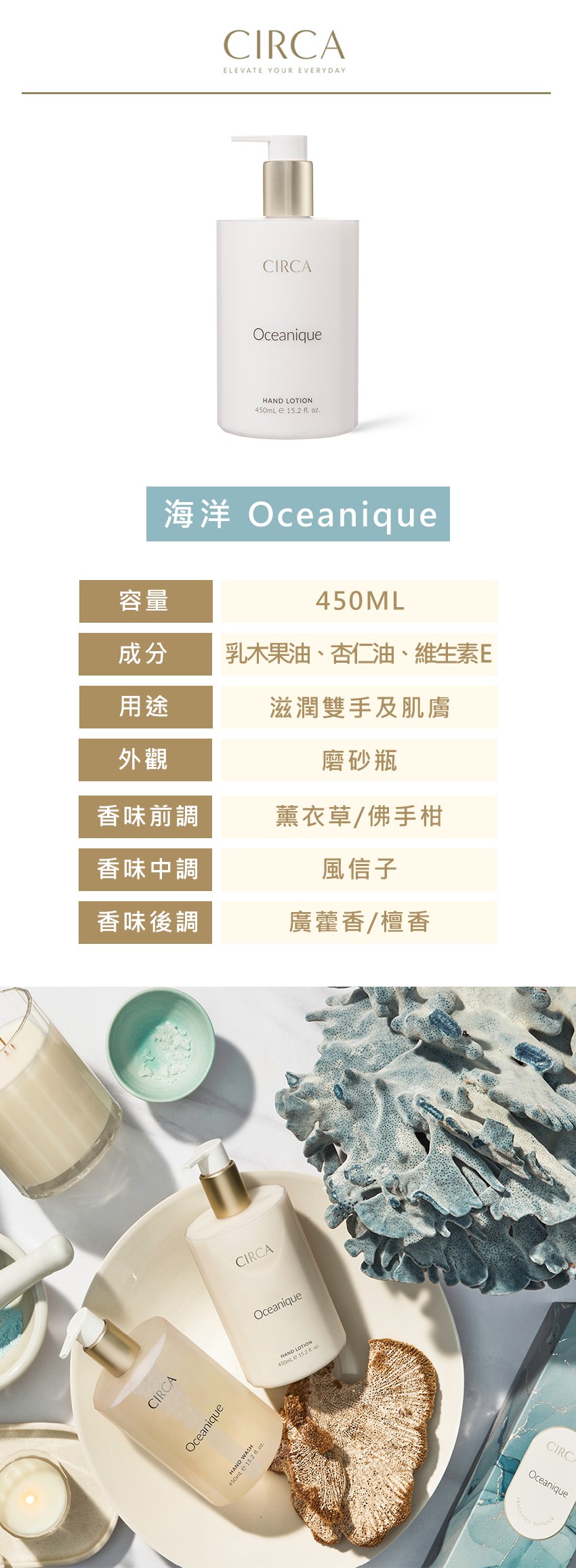 澳洲CIRCAHOME Oceanique 海洋護手乳液 450ml 1瓶