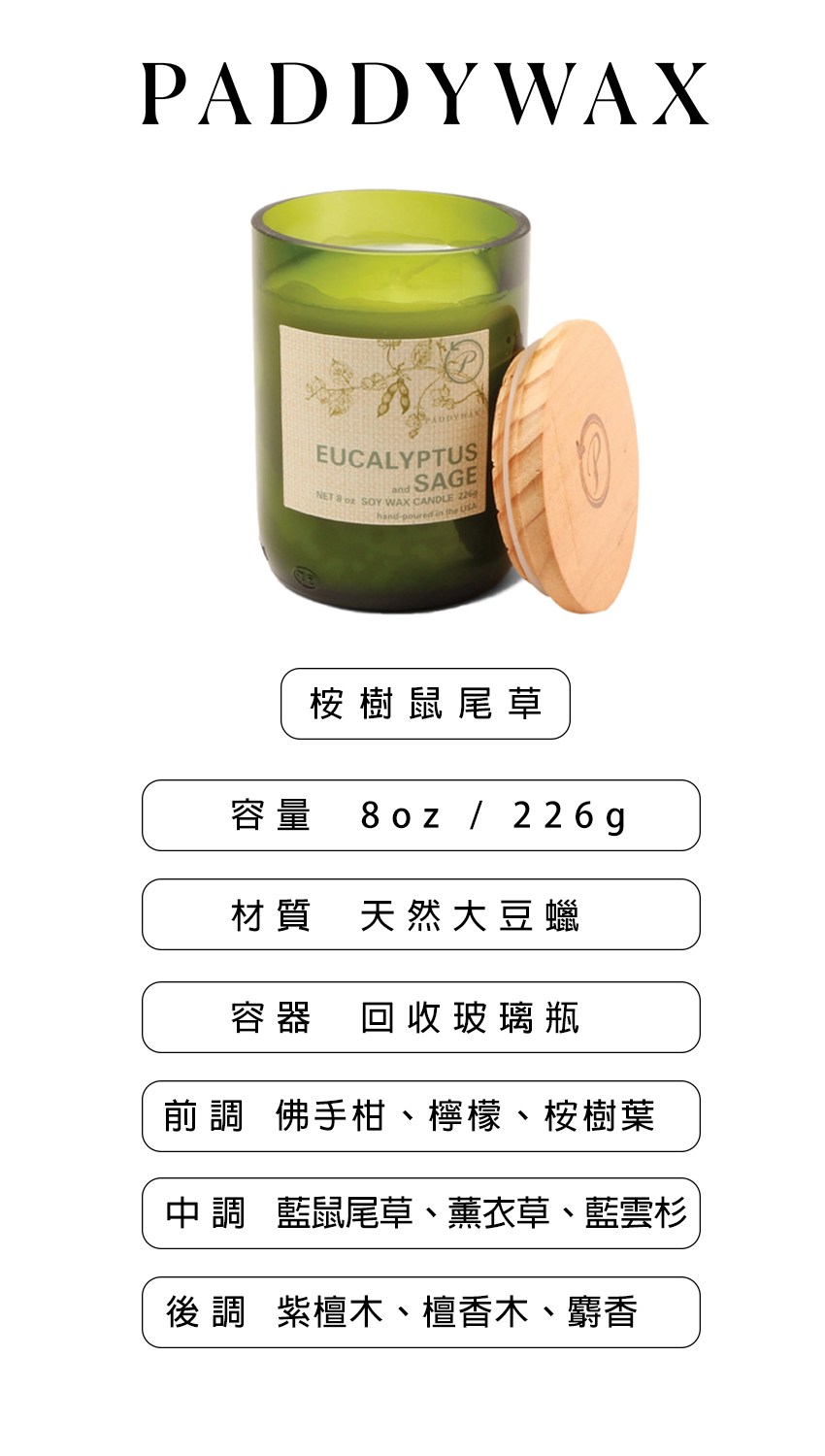 美國Paddywax 藥劑師系列 桉樹馬鞭草 香氛蠟燭 226g