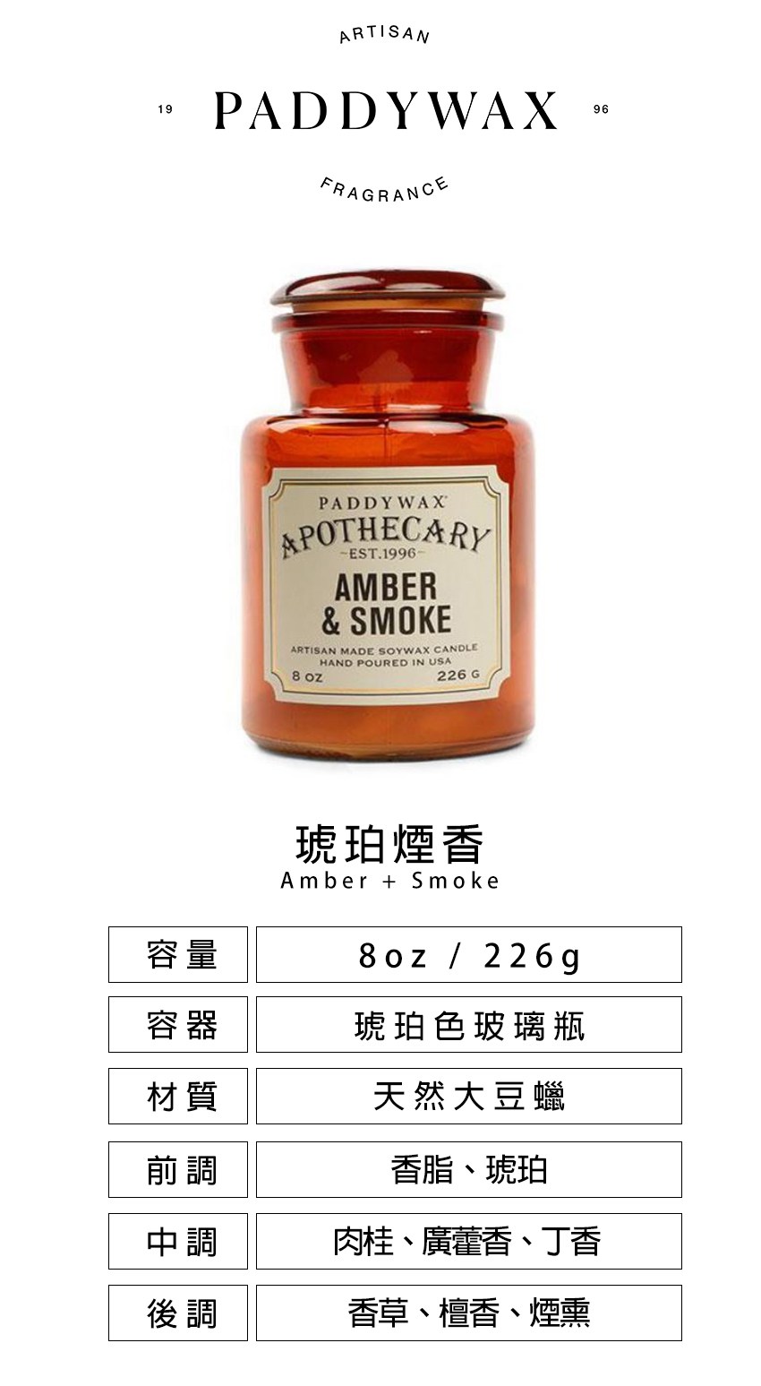美國Paddywax 藥劑師系列 琥珀煙香 香氛蠟燭 226g