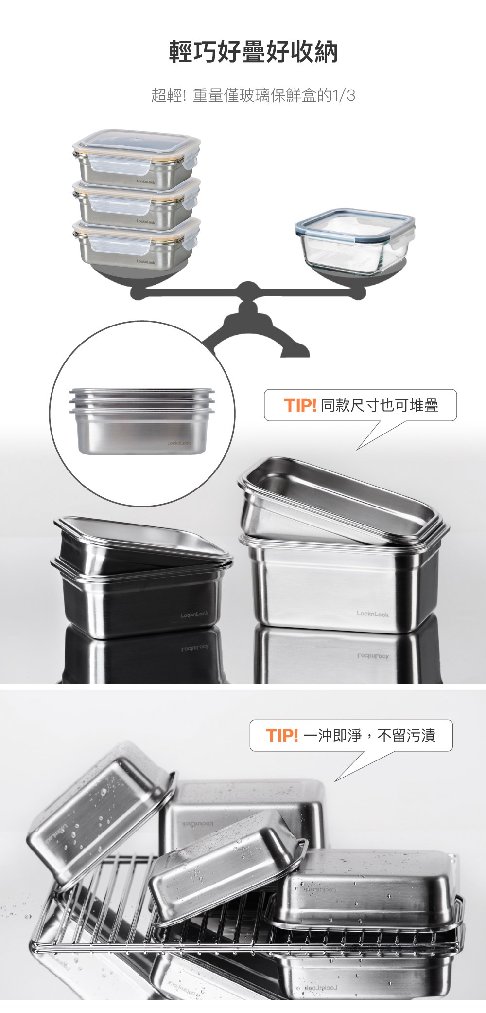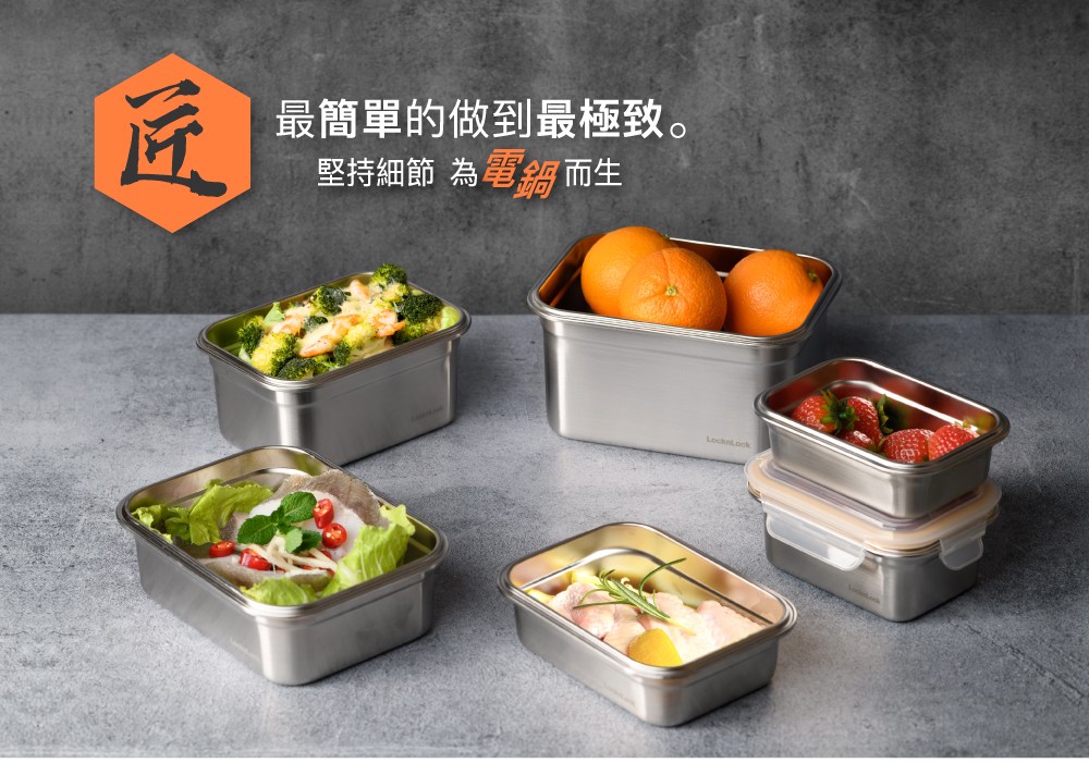 LOCK&LOCK 樂扣樂扣 極簡不鏽鋼保鮮盒 (600ml/個)【杏一】