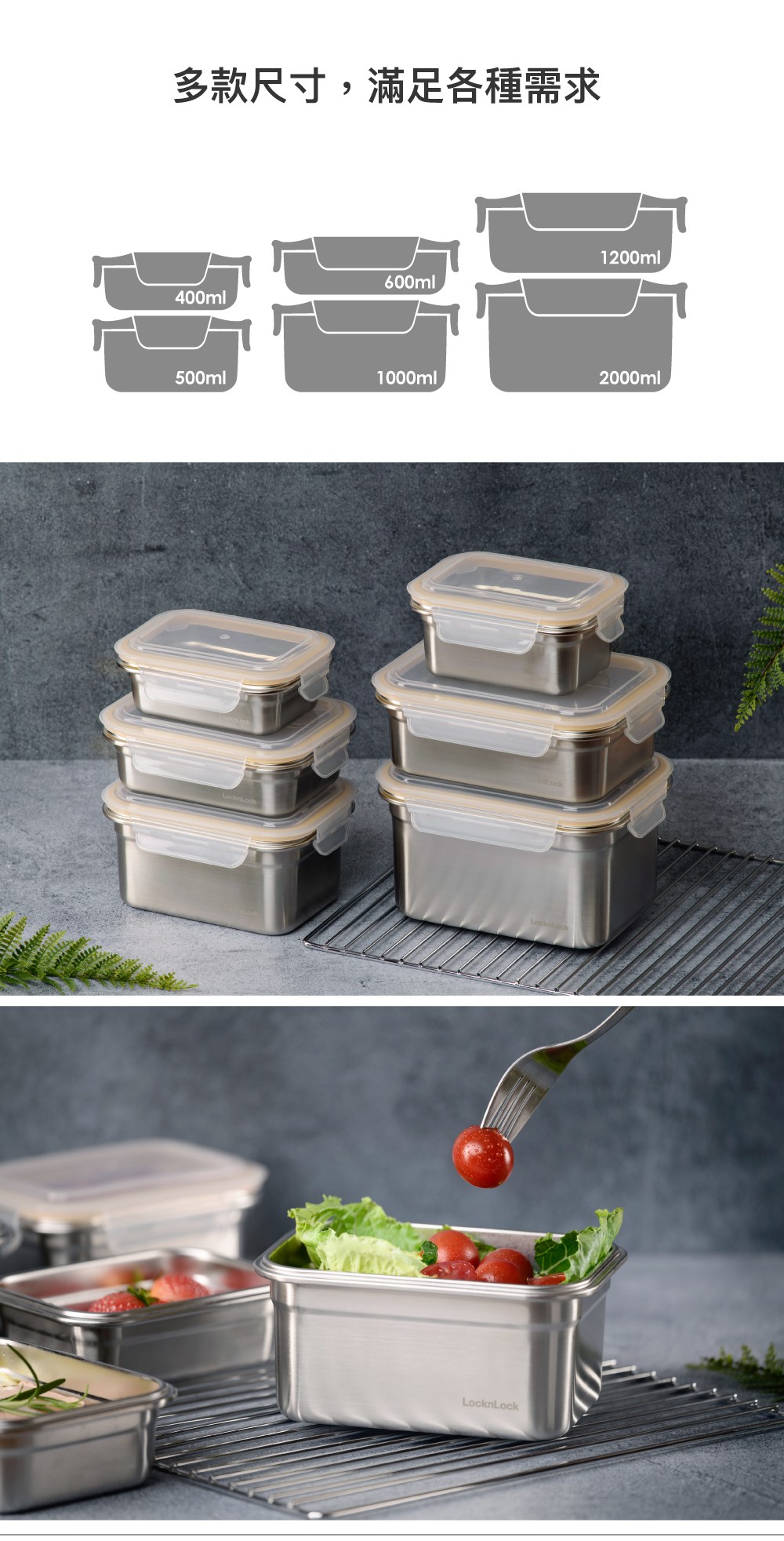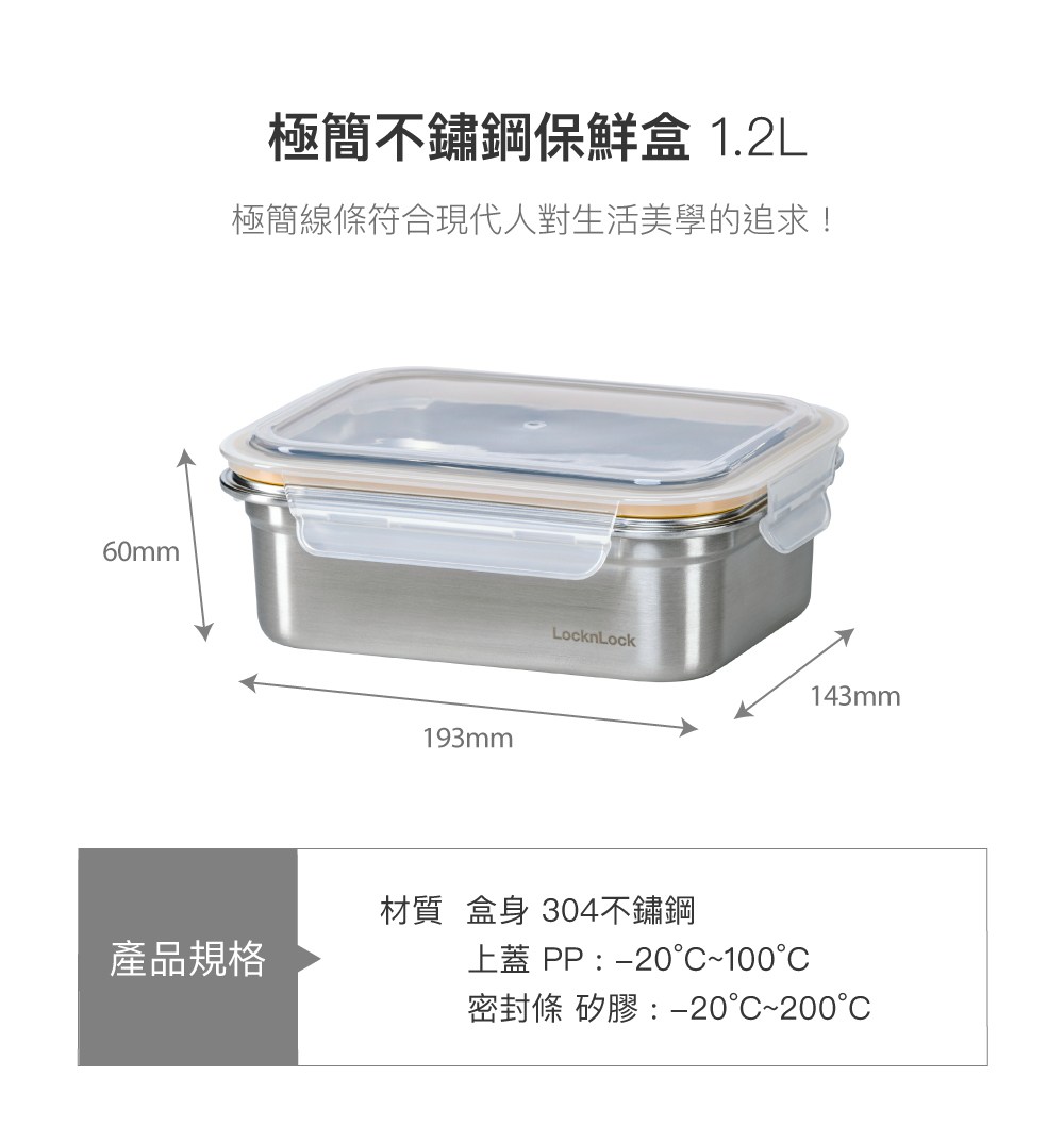 樂扣極簡不鏽鋼保鮮盒-1.2L