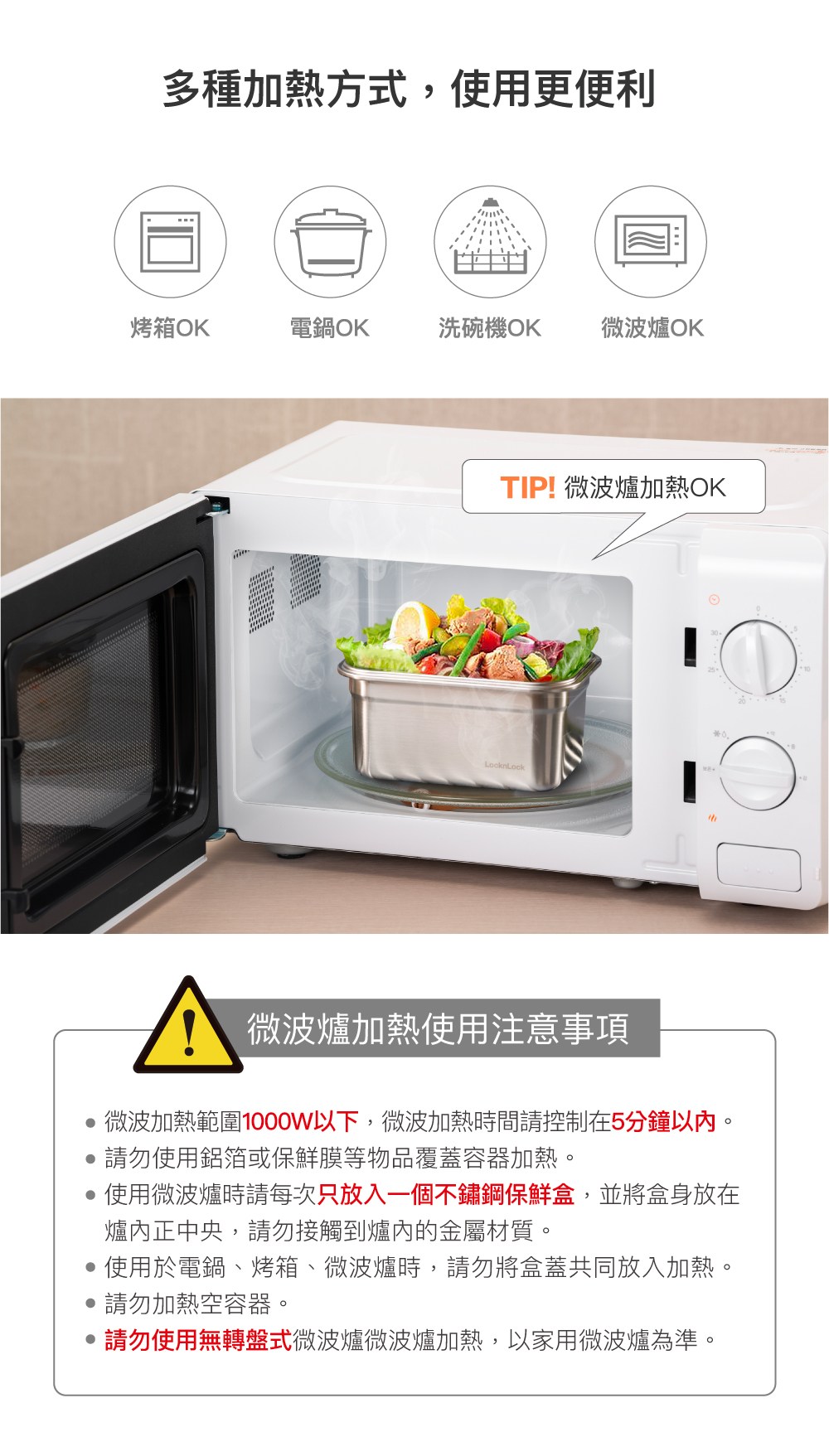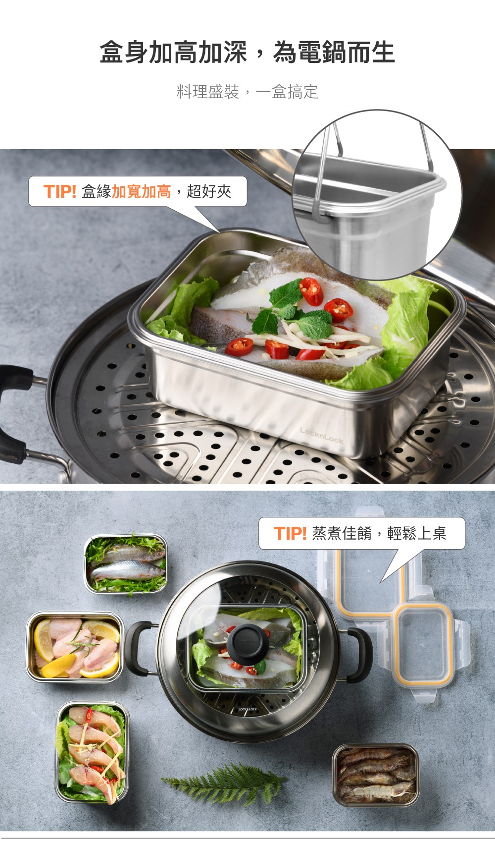 樂扣樂扣可微波極簡304不鏽鋼保鮮盒1200ML