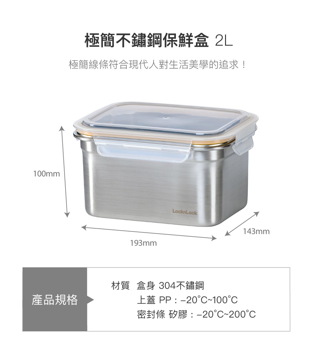 樂扣樂扣可微波極簡304不鏽鋼保鮮盒2000ML