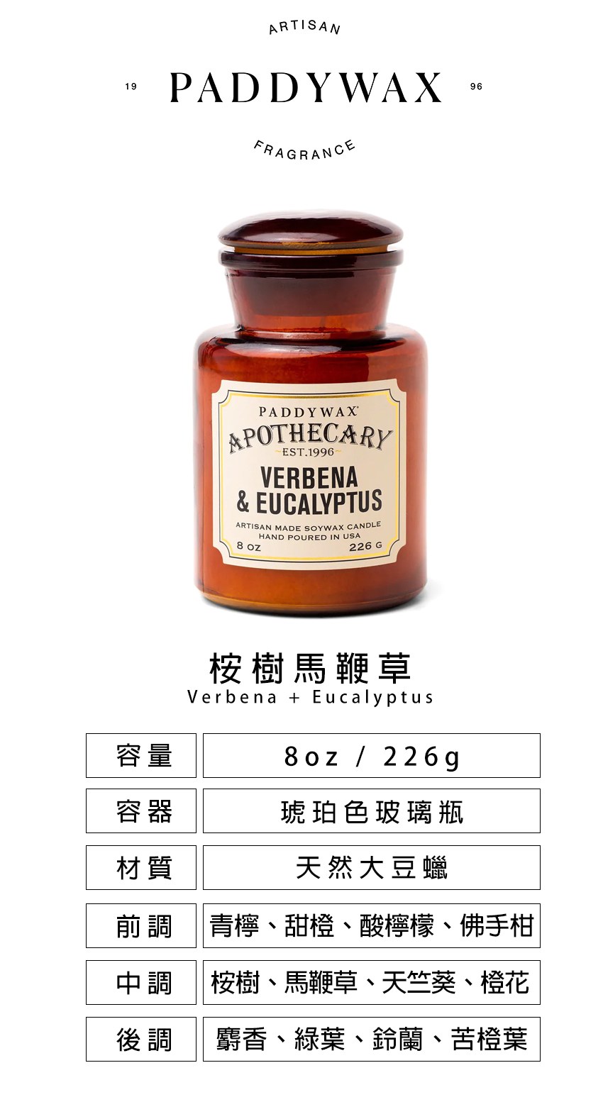 立刻下載美國Paddywax 藥劑師系列 桉樹馬鞭草 香氛蠟燭 226g