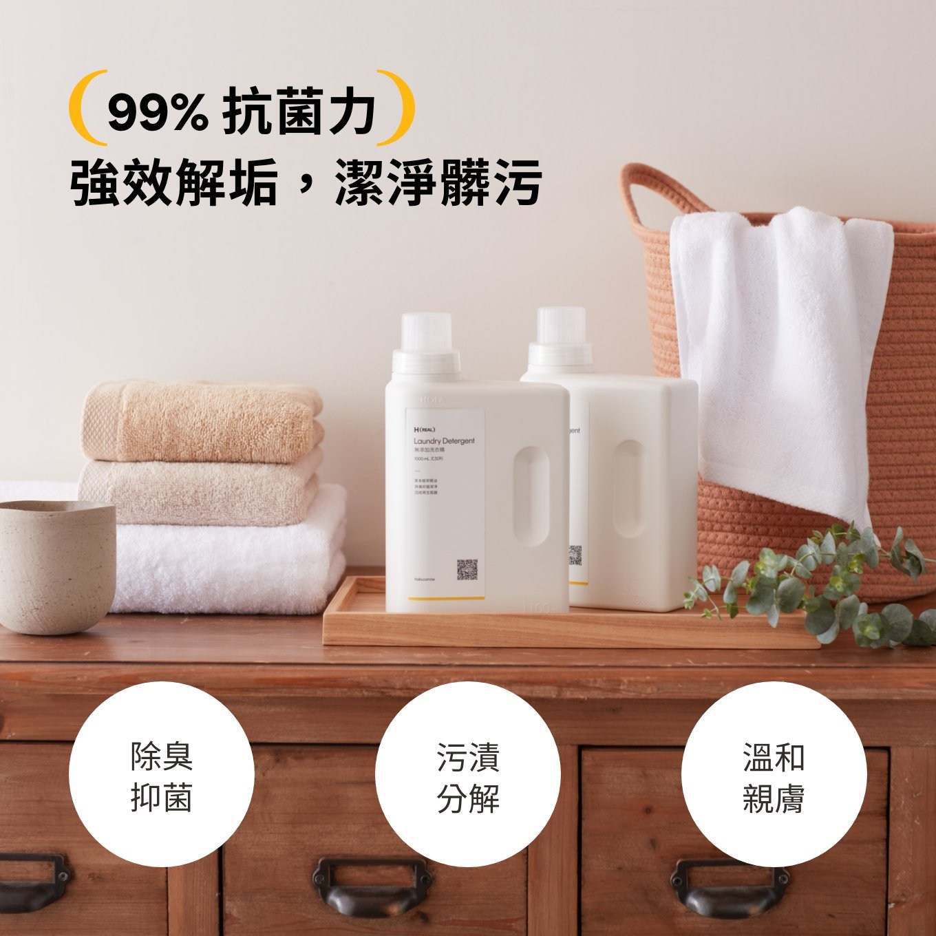 以天然油脂製成溫和液體皂,結合植萃精油潔淨配方,經檢測針對金黃色葡萄球菌具 99%抗菌效力,能有效去除衣物異味、分解頑固髒污與細菌,深層去汙不傷衣物纖維,溫和親膚達到高效清潔力。好沖洗不易殘留,適用於一般及滾筒洗衣機,給予生活剛剛好的純粹呵護。